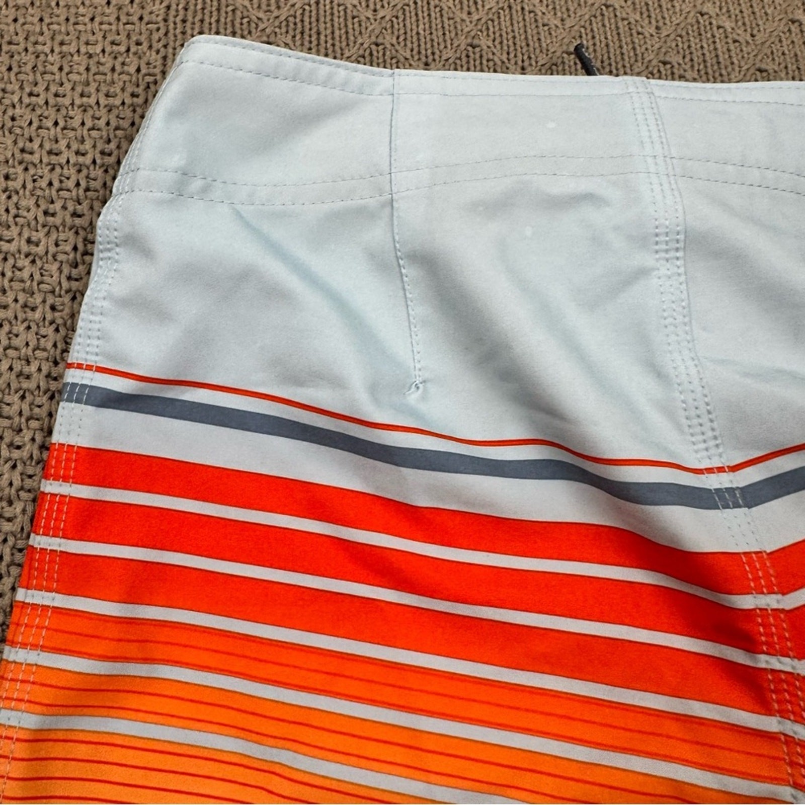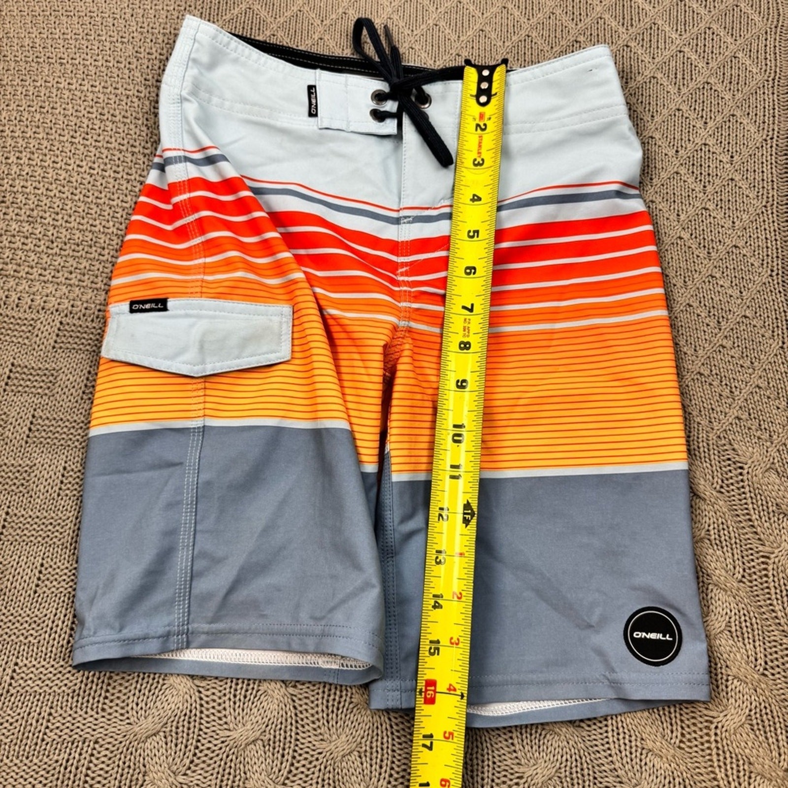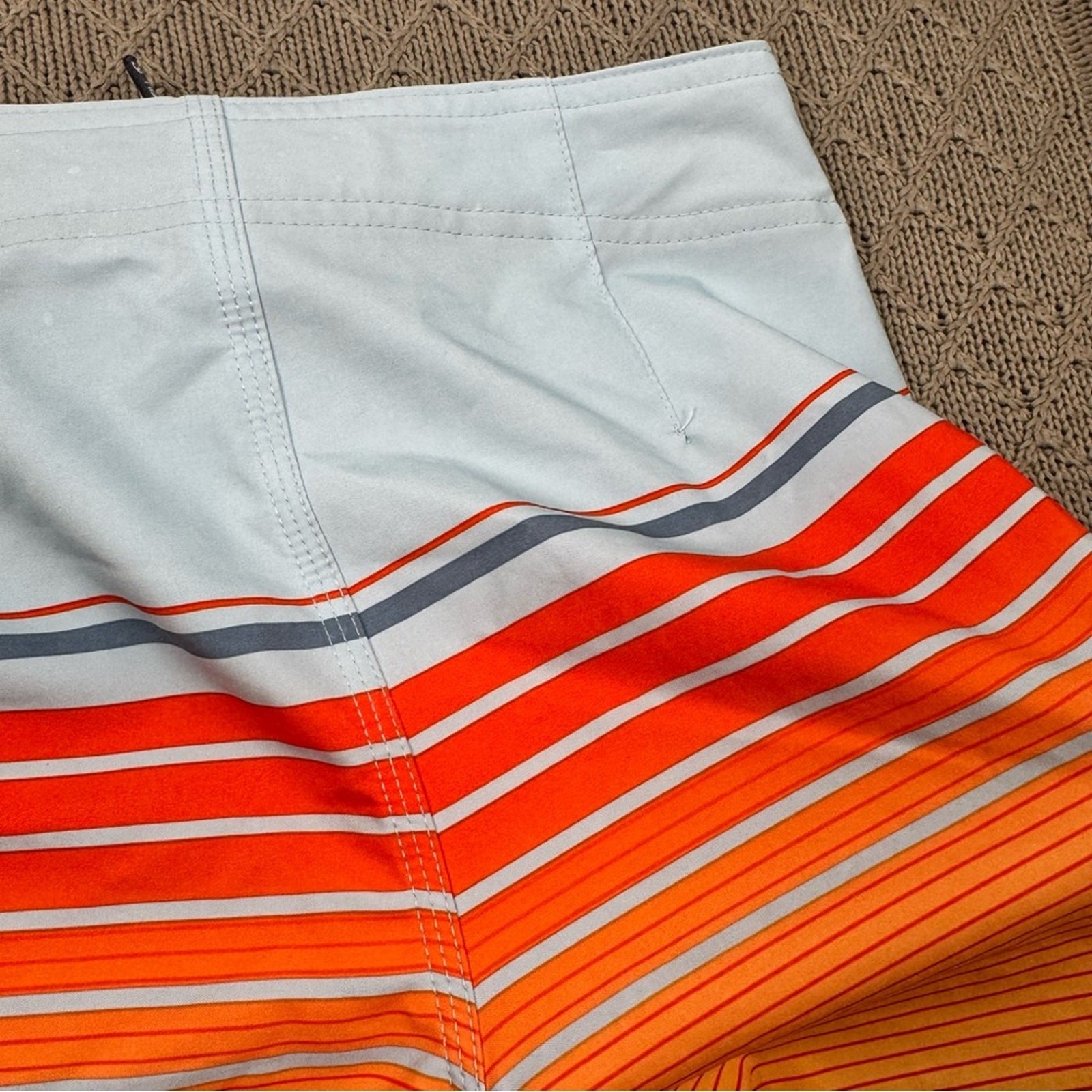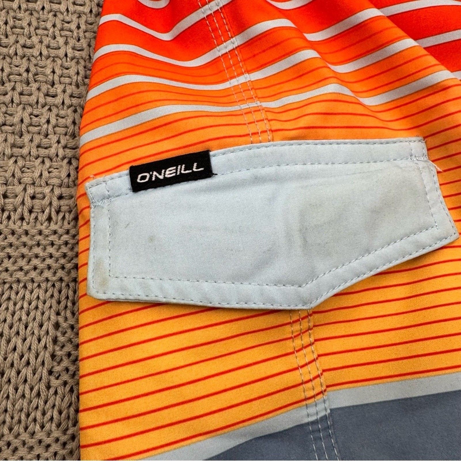 как выглядит ONeill Boys Swim Board Shorts - Red, Orange, and Gray Striped Color block 8/24 фото