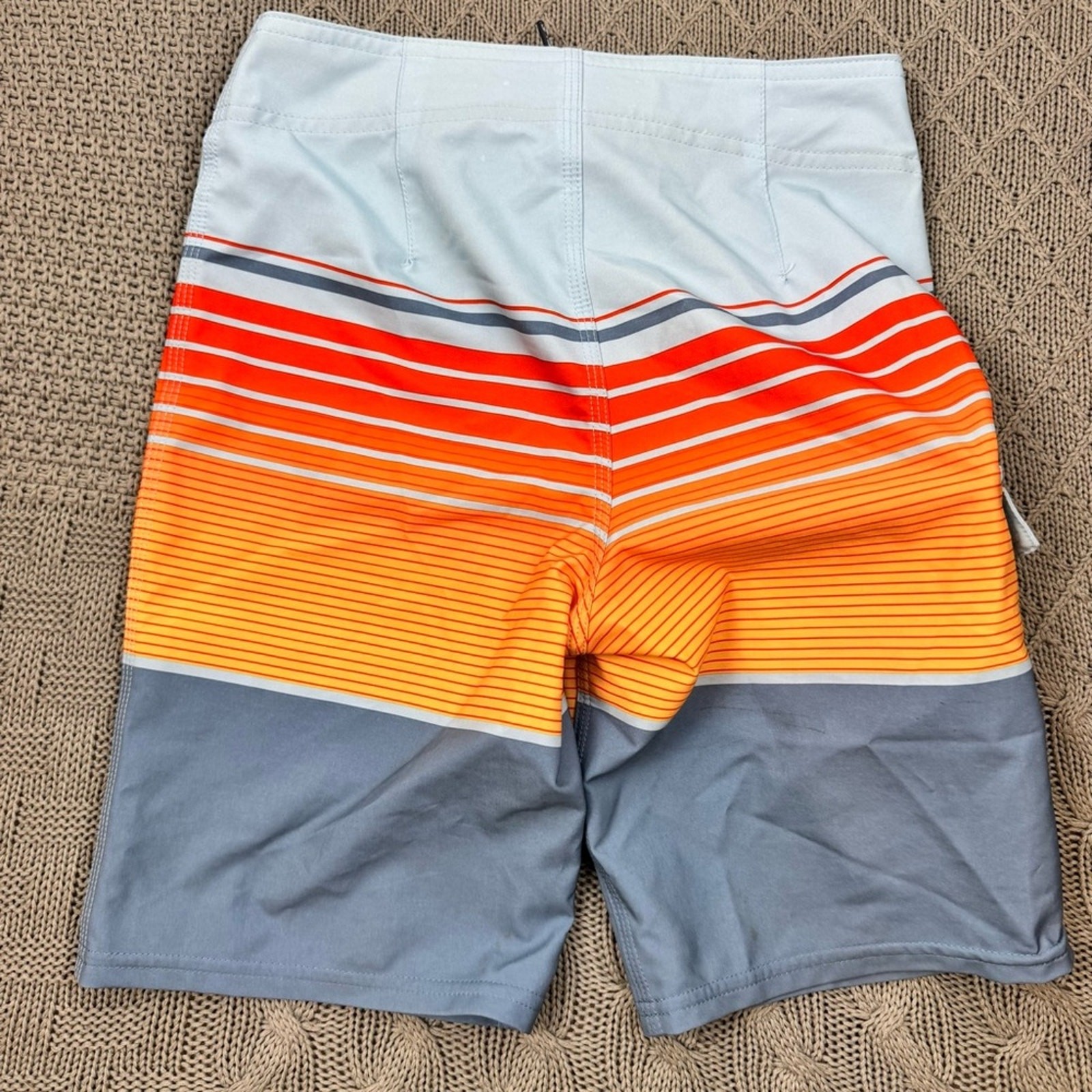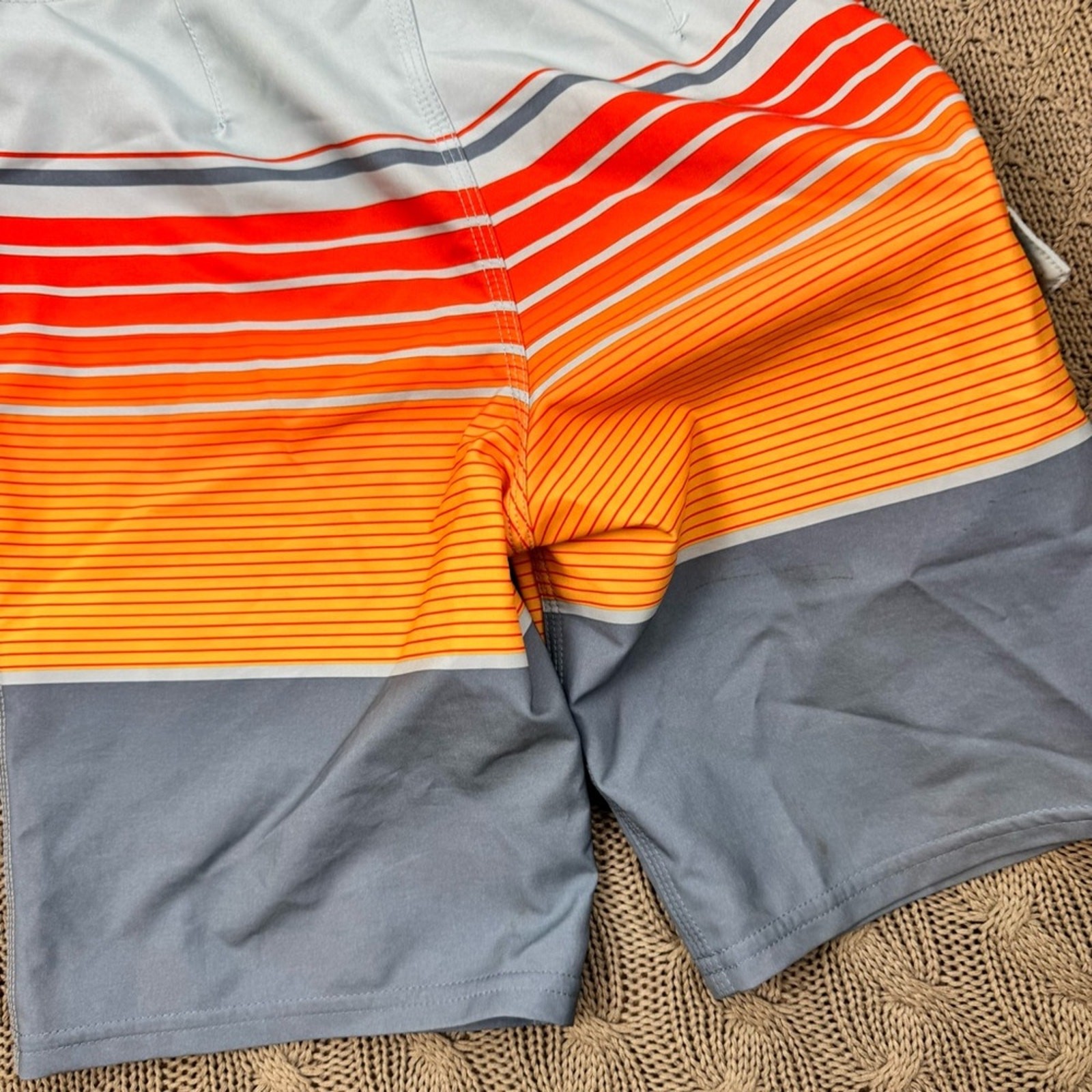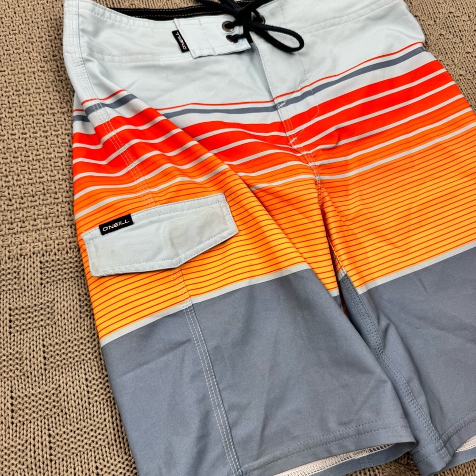 O'Neill Boys Swim Board Shorts - Red, Orange, and Gray Striped Color block 8/24