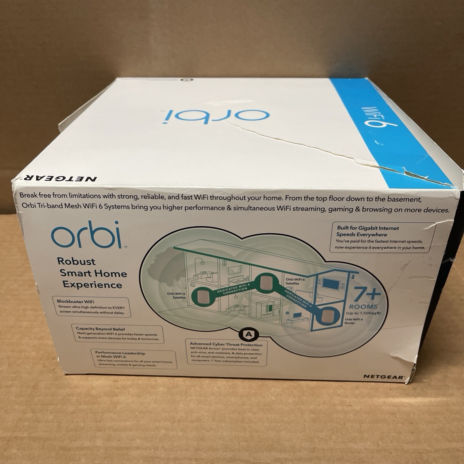 Netgear Orbi RBK763S AX5400 Tri Band WiFi 6 Mesh Router 2 Satellites 7500 SqFt