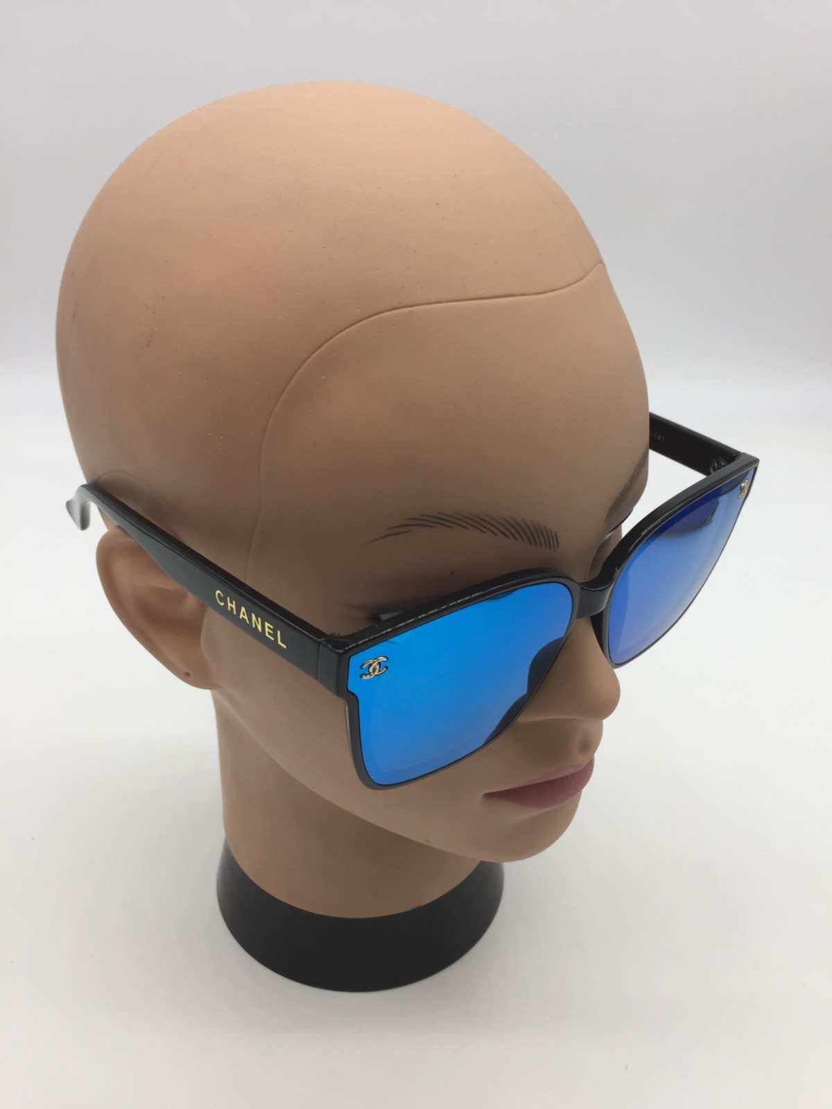 как выглядит Chanel Womens Black Frame Designer Sunglasses 60-17-141 Blue Mirrored Lens фото
