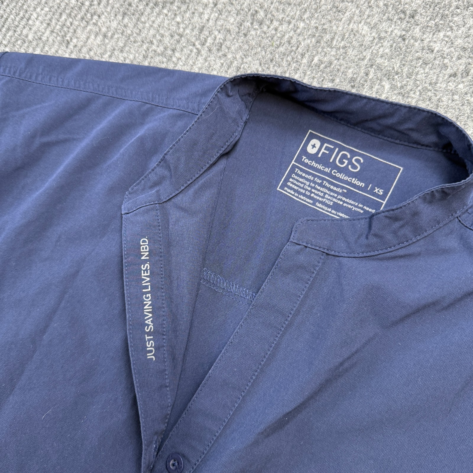 как выглядит Figs Rafaela Scrub Top Womens XS Blue Oversized Mandarin Collar Pockets Nurse фото
