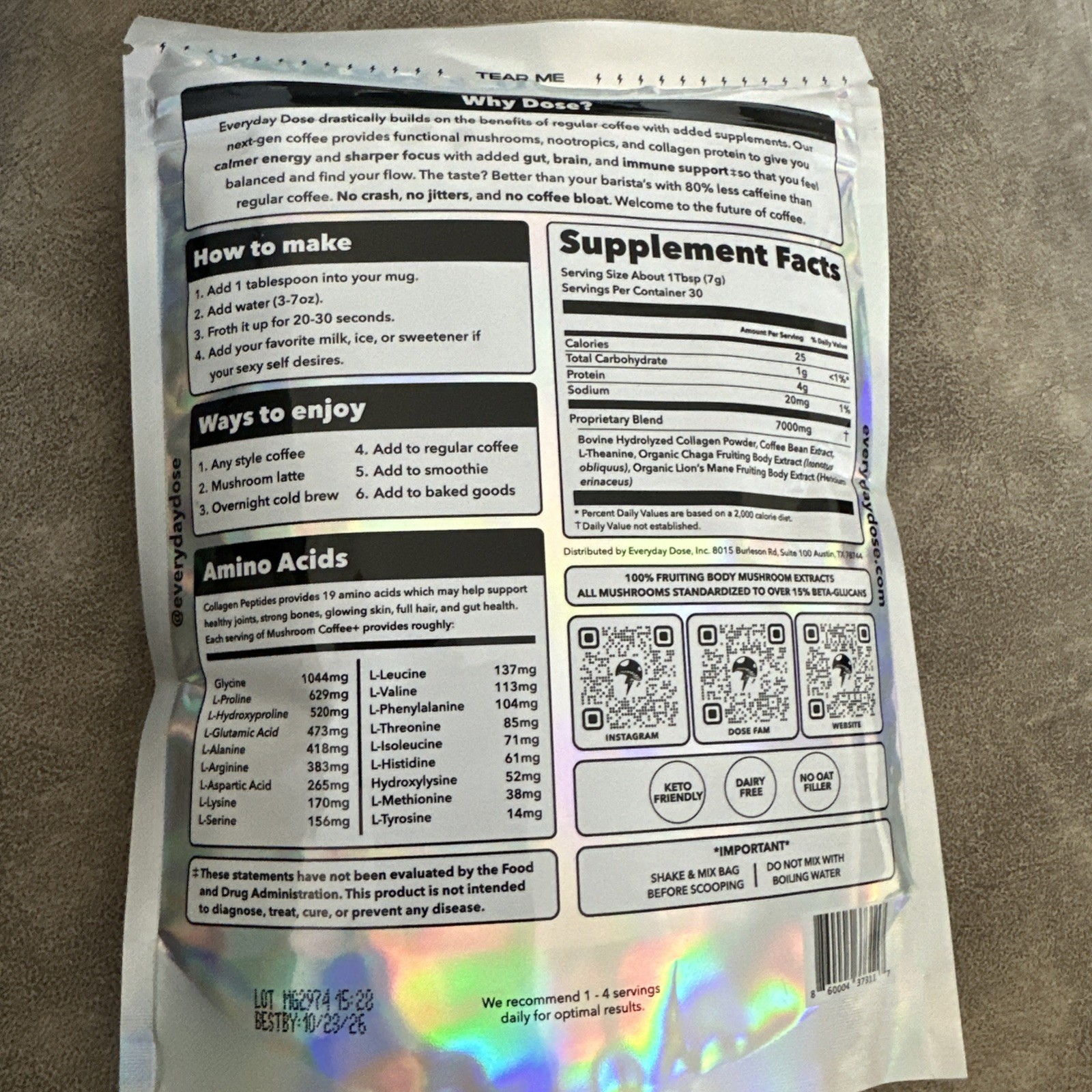 EVERYDAY DOSE Mushroom Coffee Collagen Protein 7.4 oz 30 Servings BRAND NEW