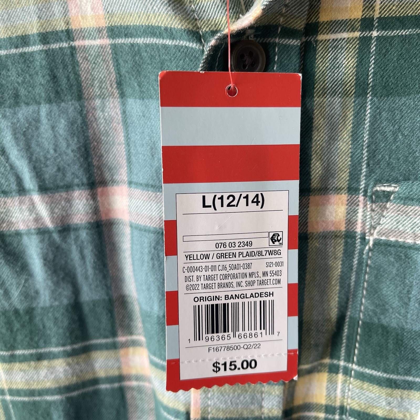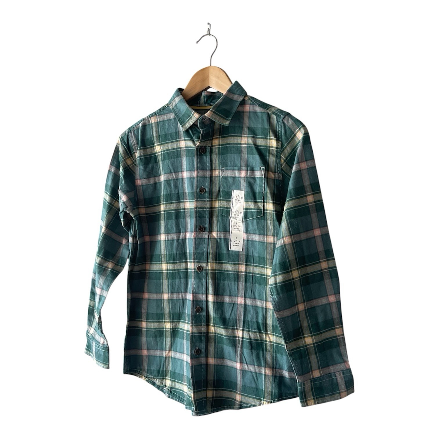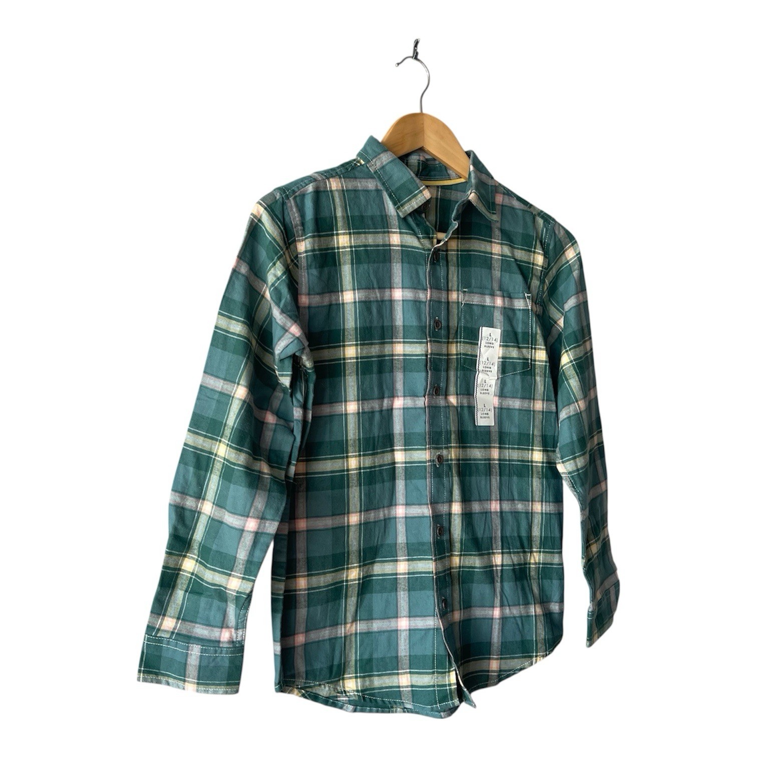 как выглядит Cat Jack Boy s Green Yellow Plaid 100 Cotton Flannel L 12-14 NWT фото