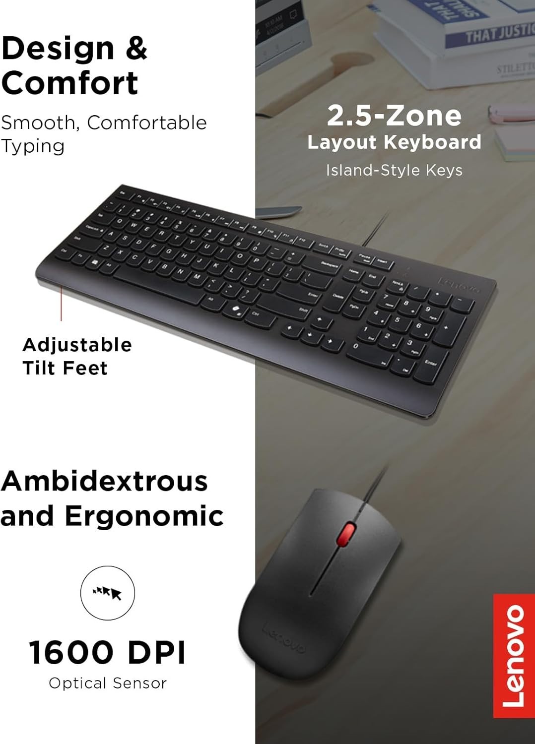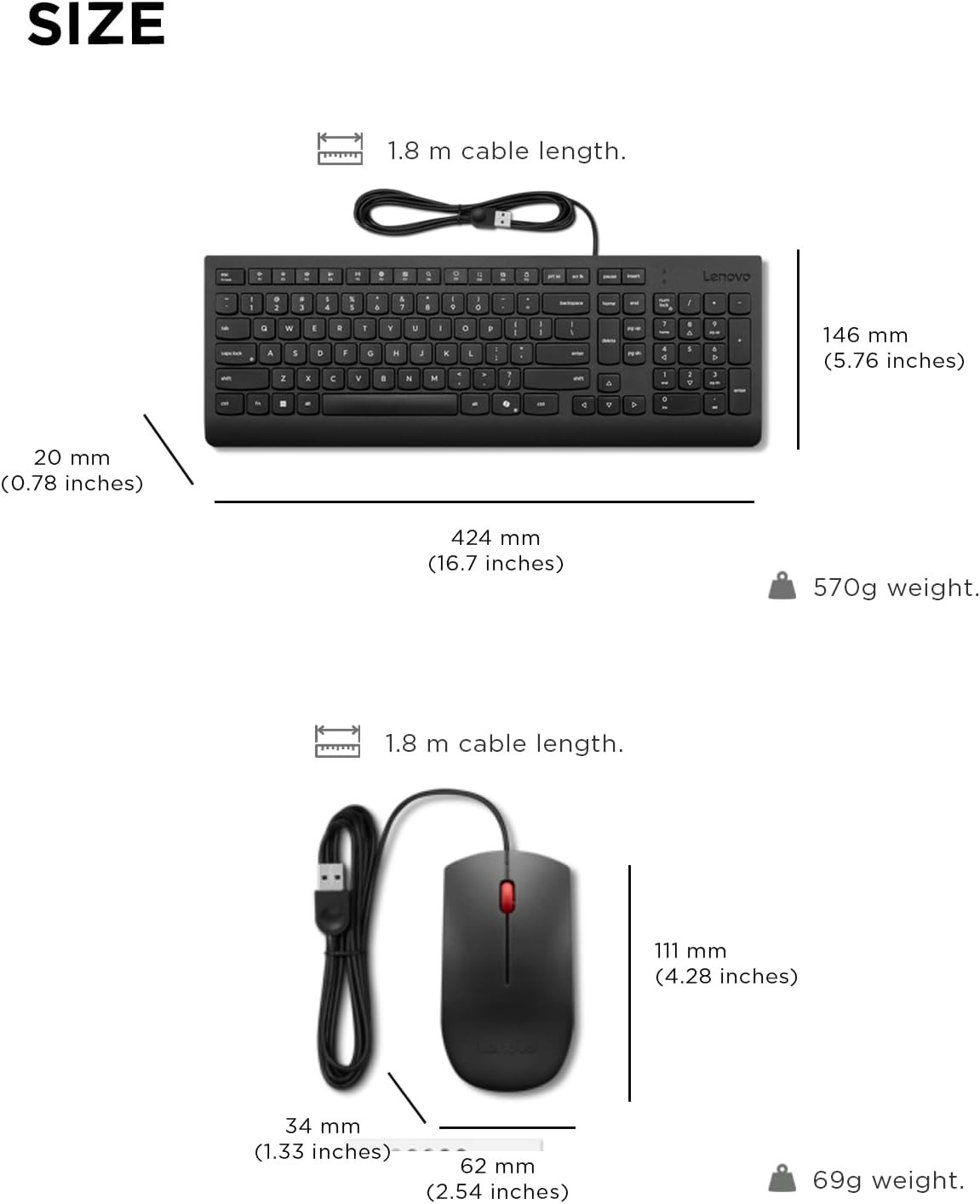 Lenovo Essential Wired Keyboard Mouse Combo US English