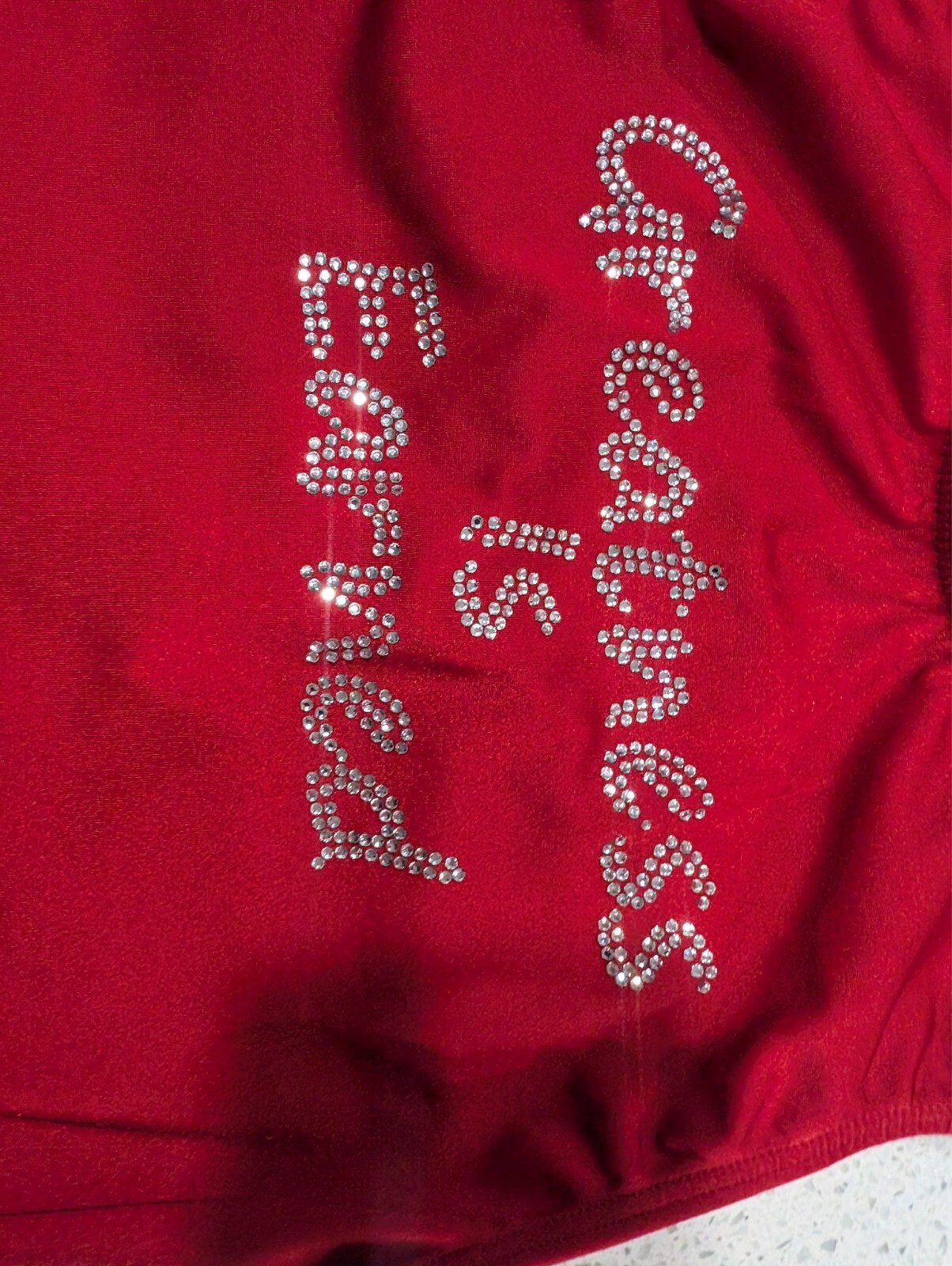 GREATNESS IS EARNED GK Elite Gymnastics Dance Leotard Adult Large Red RHINESTONE