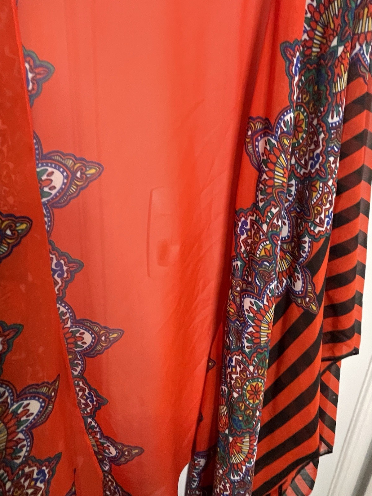 как выглядит Catherines One Size Kimono Style Cardigan Multicolor Paisley Striped Sheer Light фото