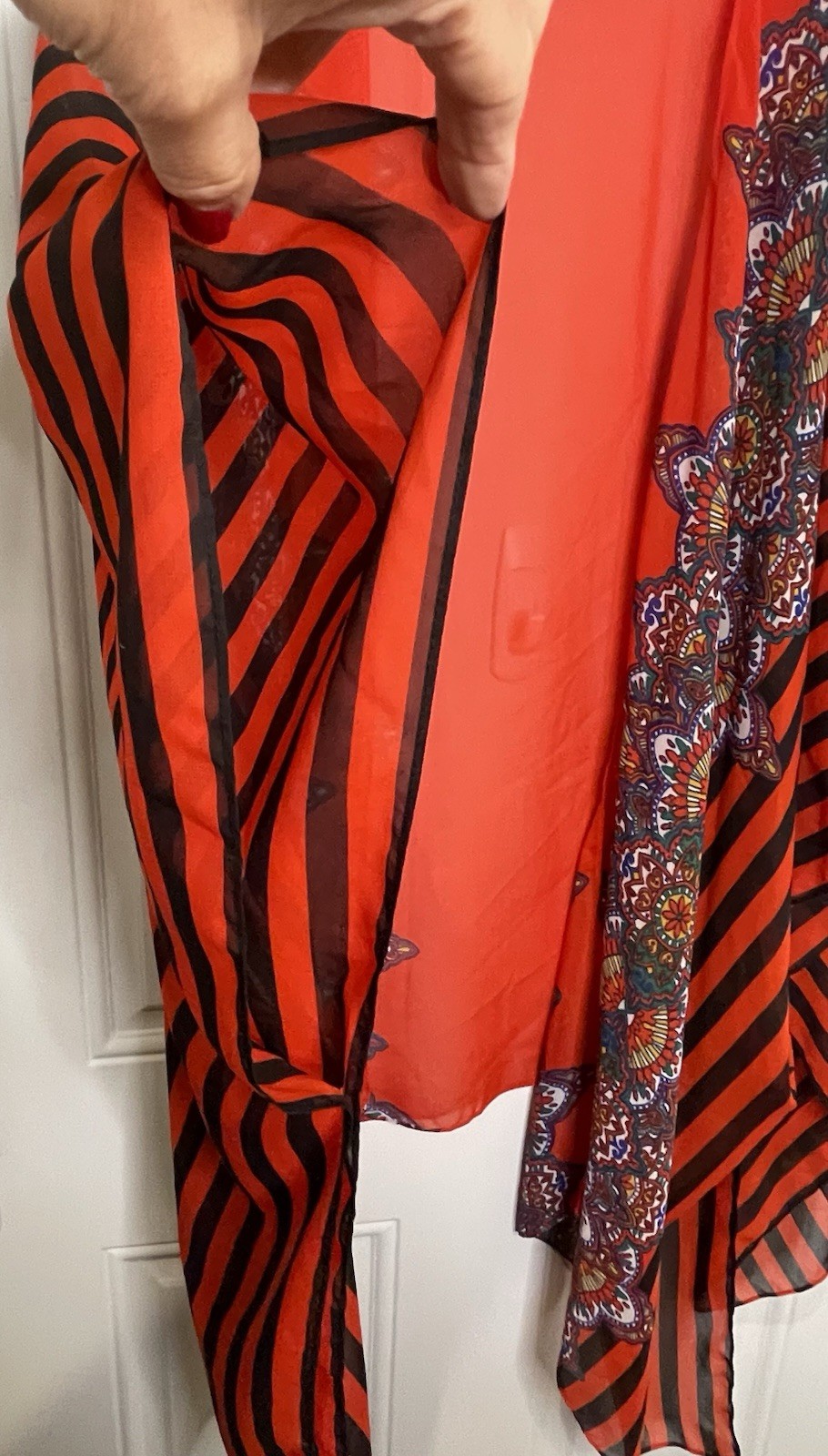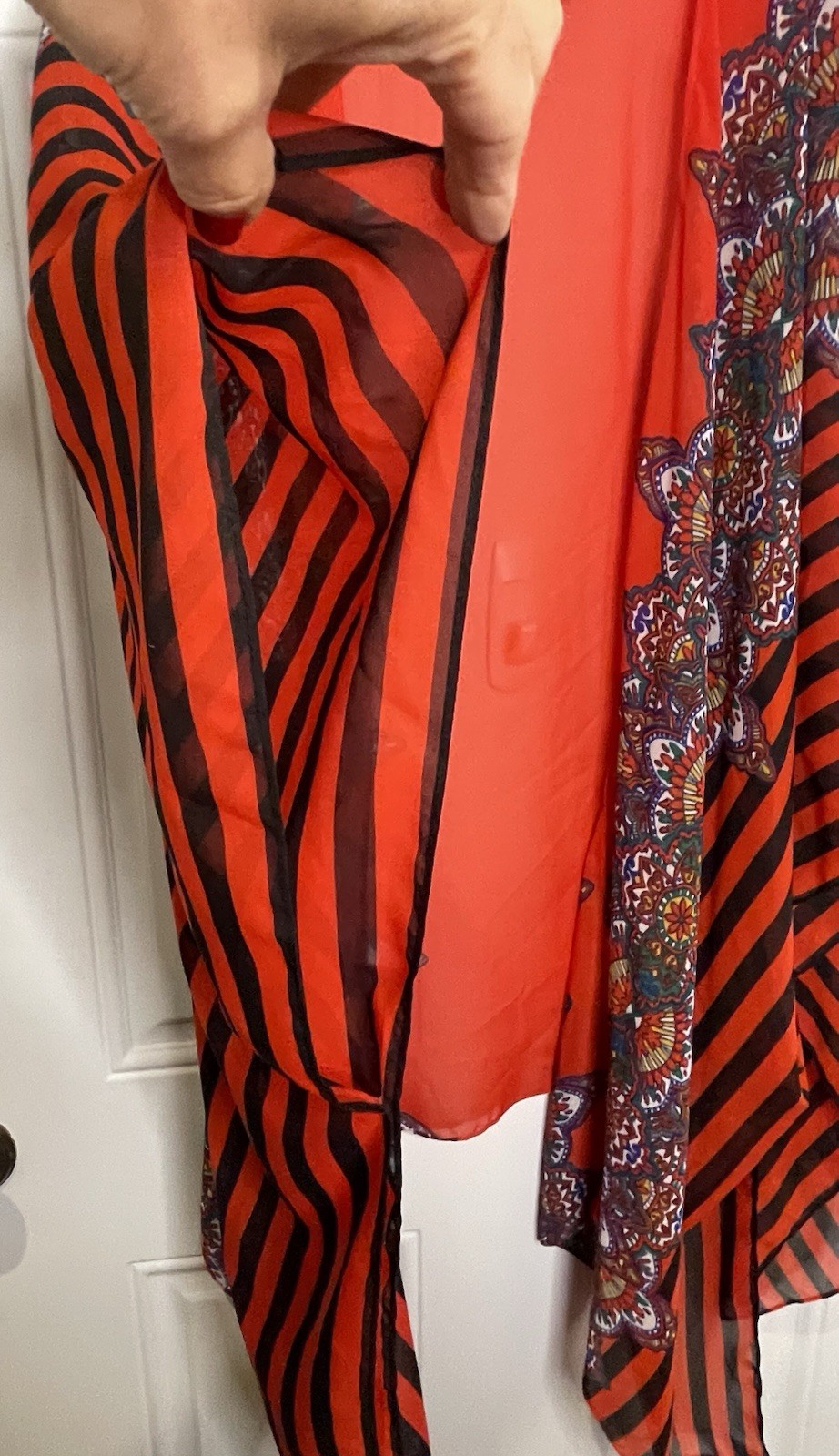 Catherines One Size Kimono Style Cardigan Multicolor Paisley Striped Sheer Light