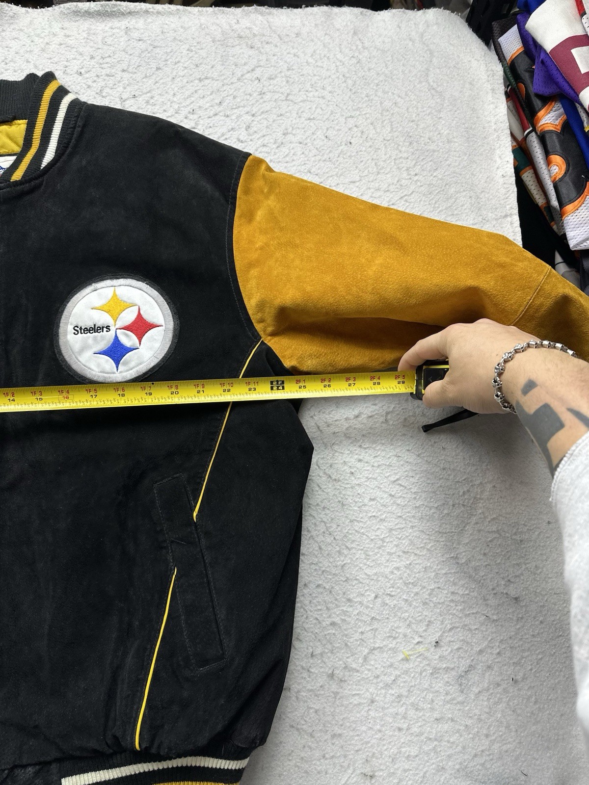 Vintage Men s Pittsburgh Steelers Suede Bomber Jacket NFL Football Zip Up Sz L