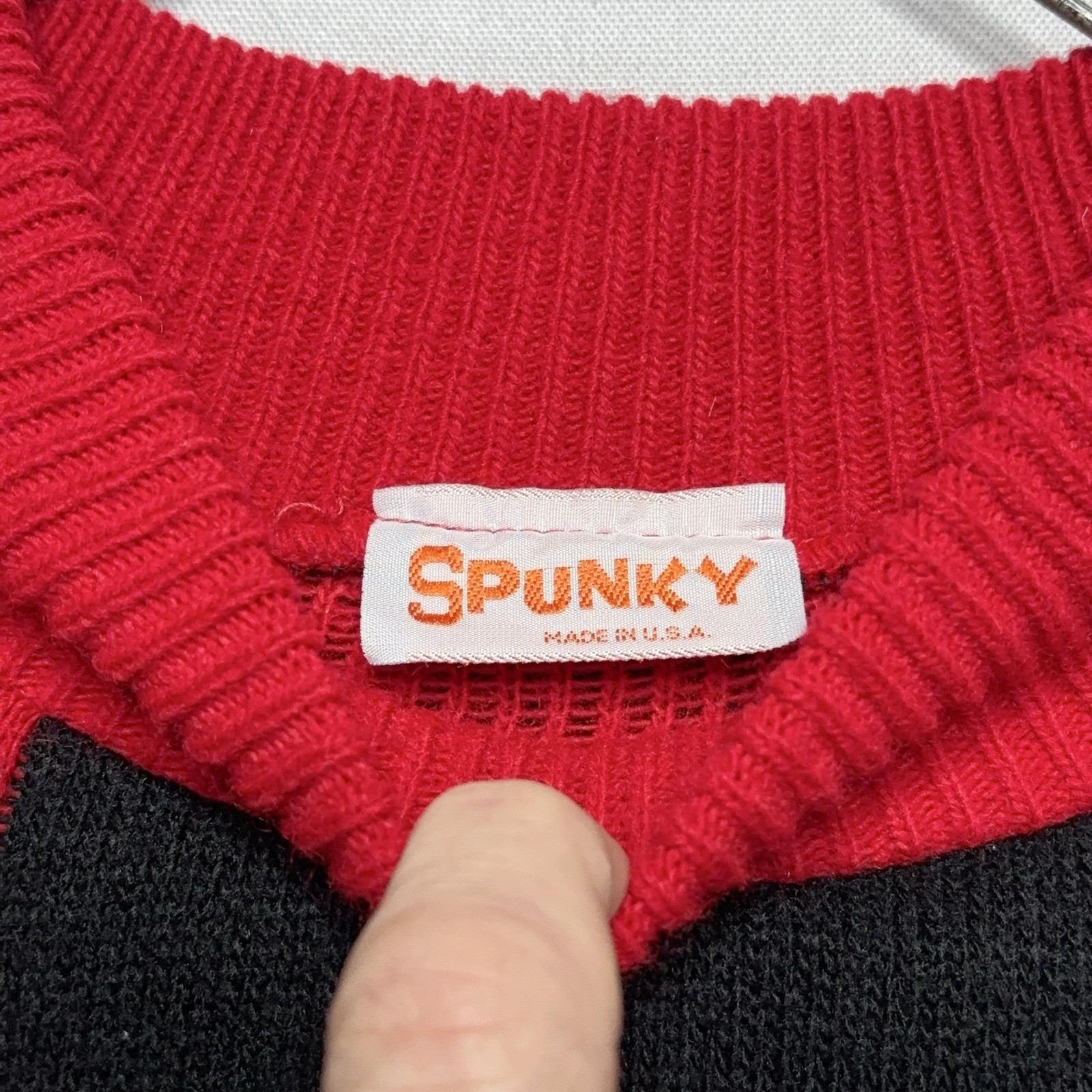как выглядит VTG 80s / 90s Spunky Cat Sweater - Lazy Kittens - Black Red - Womens MEDIUM фото