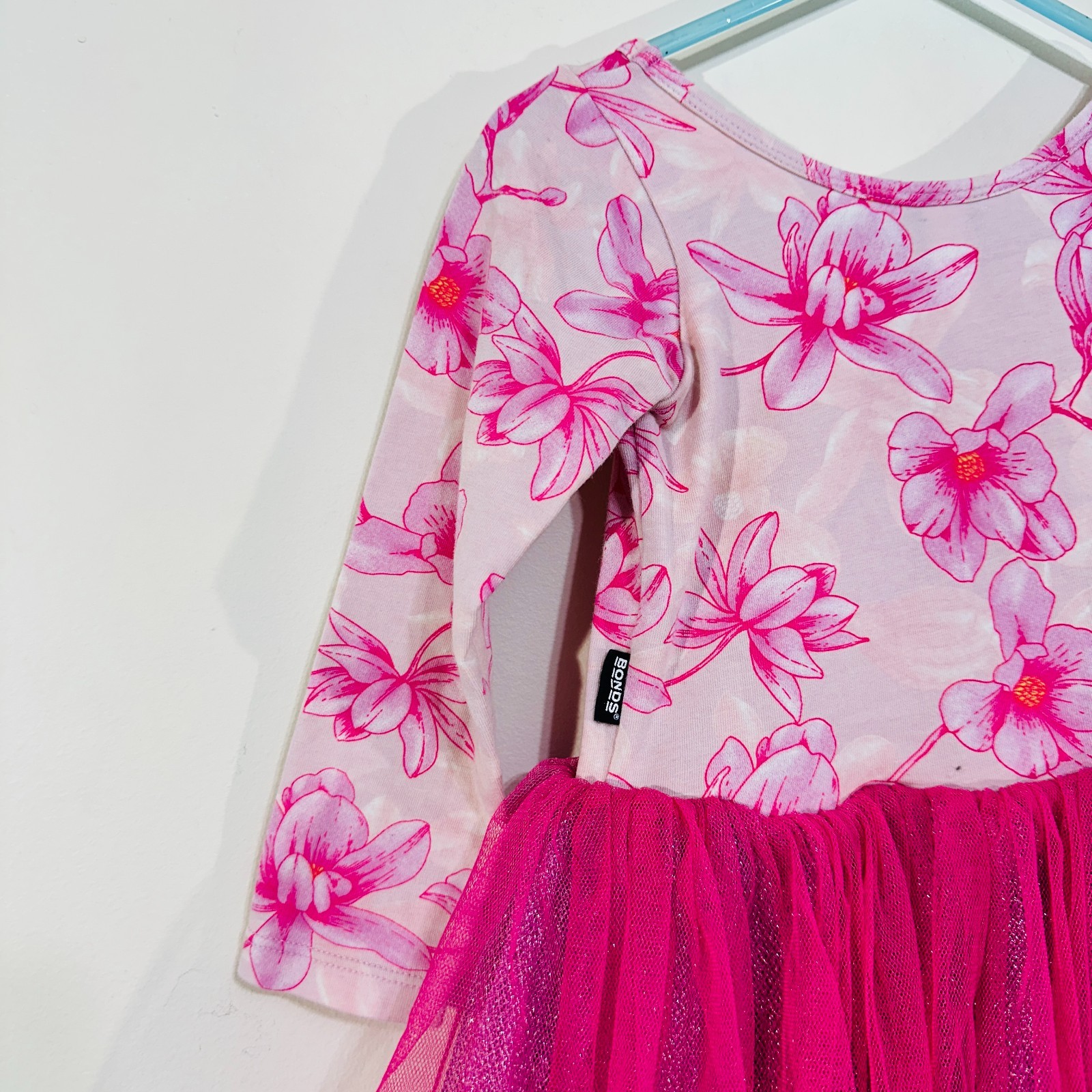 Bonds Baby Girl Long Sleeve Pink Floral Dance Tutu Dress 2 GUC