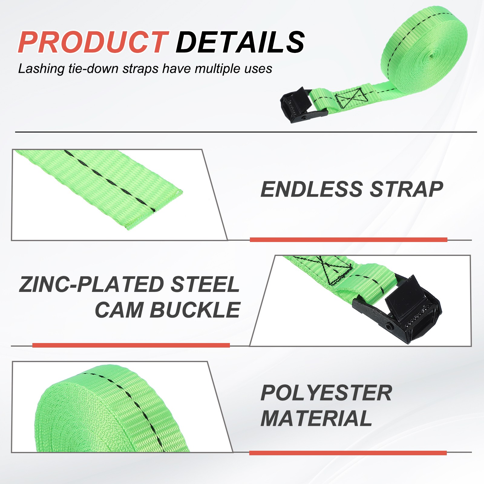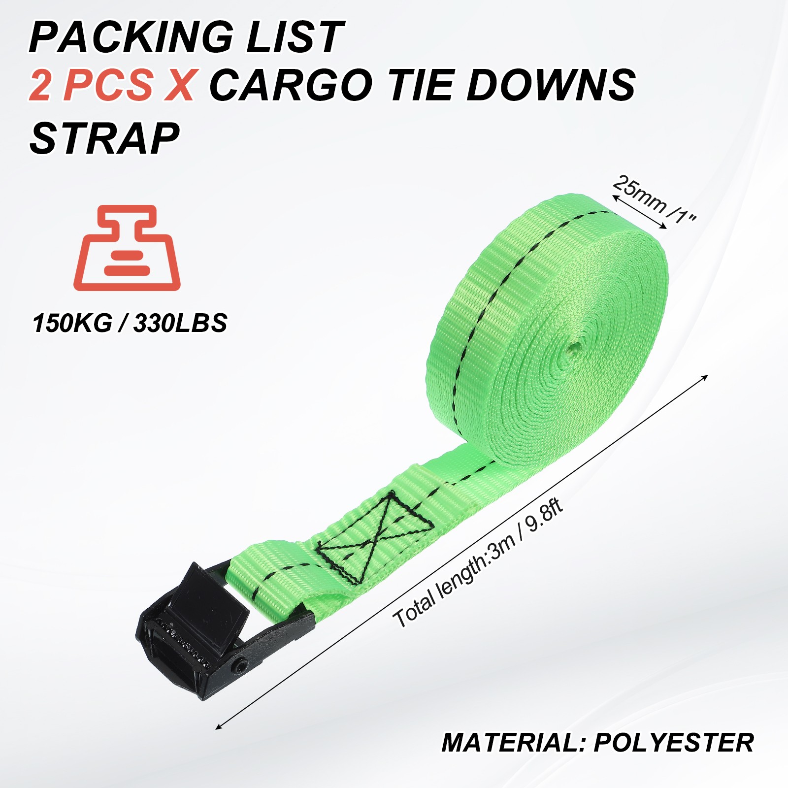 2pcs Cam Buckle Tie Down Straps 1 x 10' Lashing Strap 330lbs, Fluorescent Green
