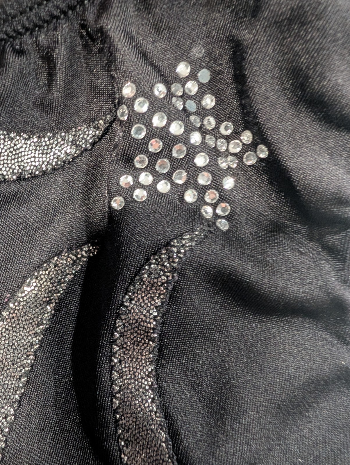 GK Elite Medium Gymnastics Dance leotard Mystique Black Silver SHOOTING STAR
