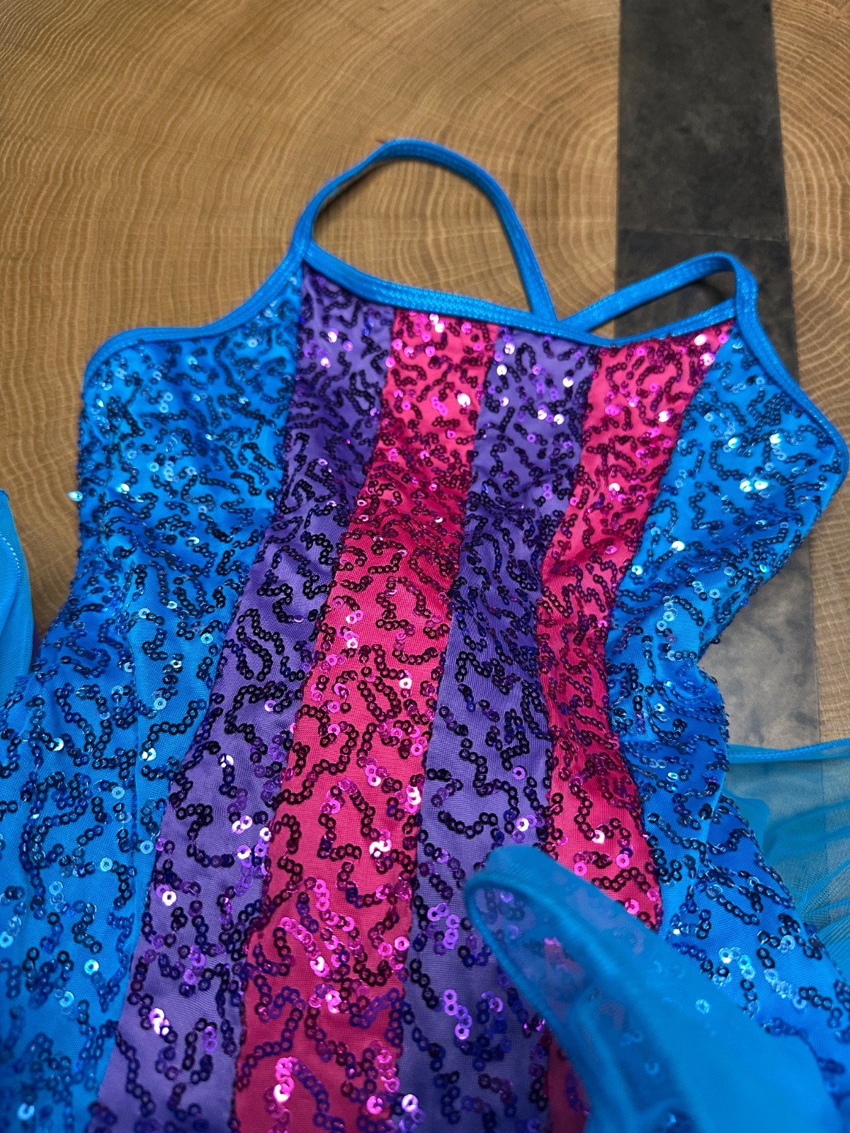 как выглядит WEISSMAN SPARKLE SEQUINS STRIPE RUFFLE DANCE COSTUME MC CHILD MEDIUM фото