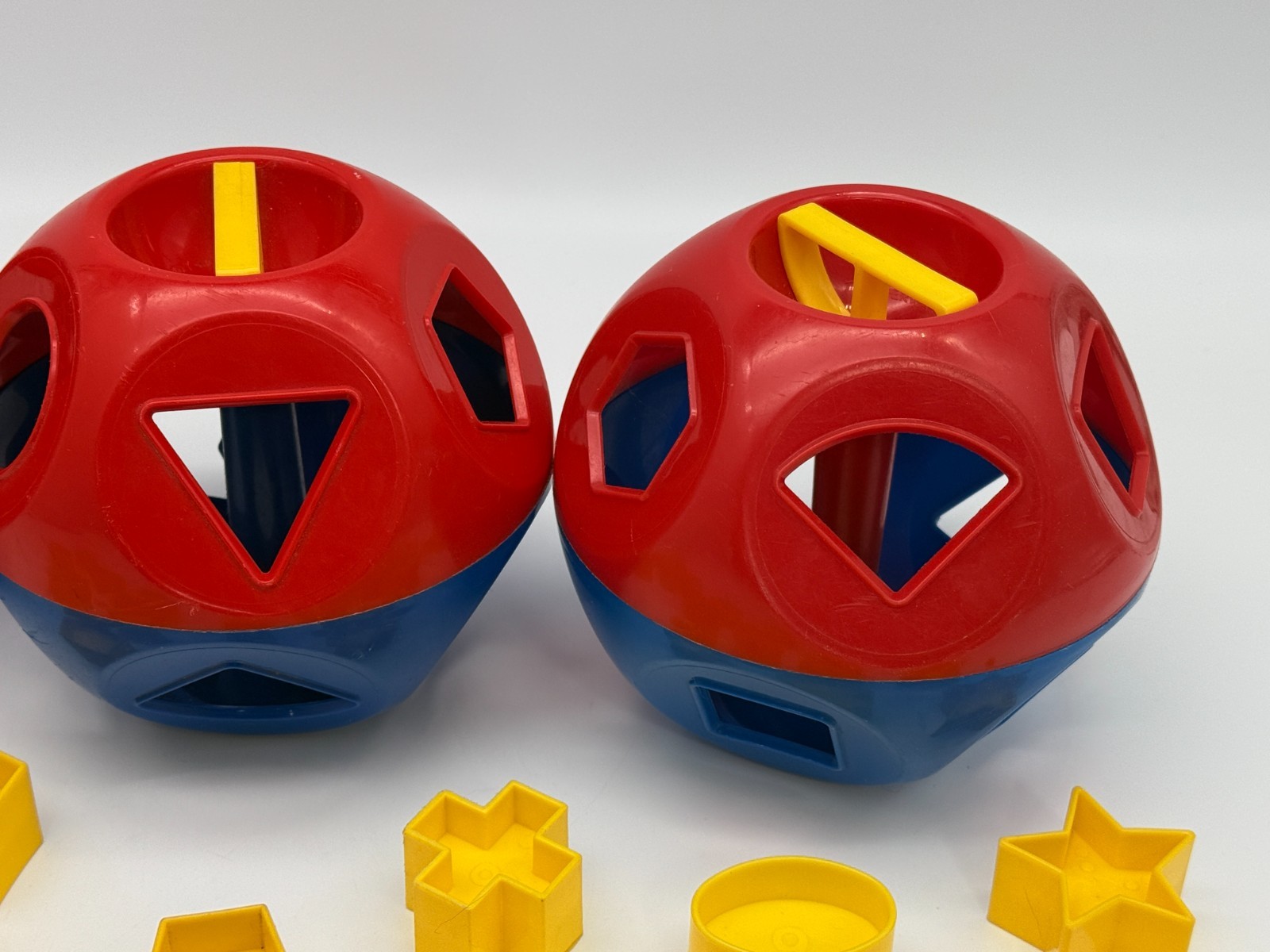 как выглядит Vintage Blue Red Tupperware Shape O Ball Shape Number Sorter Tupperkids Kids Toy фото