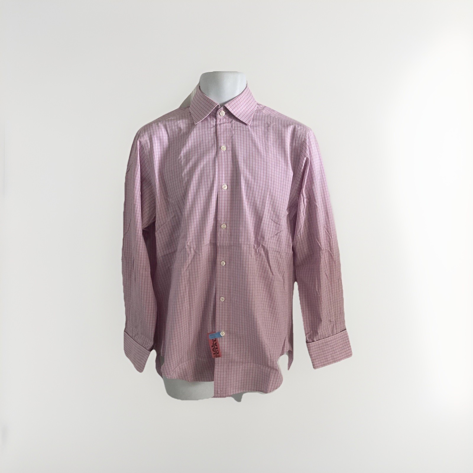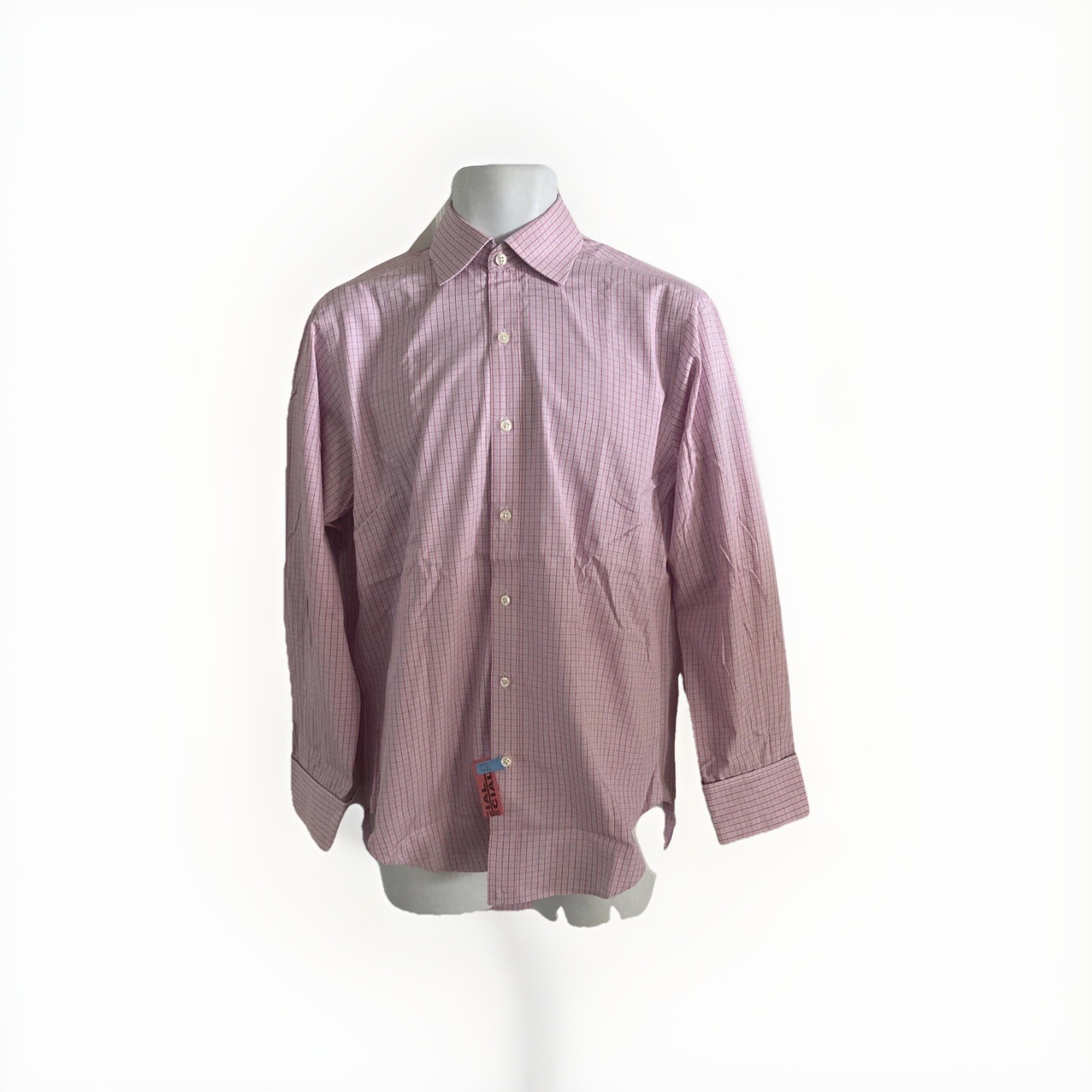 T.M. Lewin Mens Lewin 100 Cotton Pink Multi Plaid Check Dress Shirt 15 33