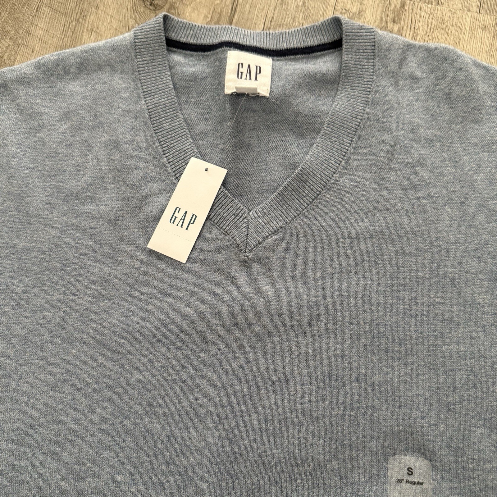 как выглядит Gap V-Neck Sweater Mens Small Blue 100 Cotton Pullover Lightweight NEW фото