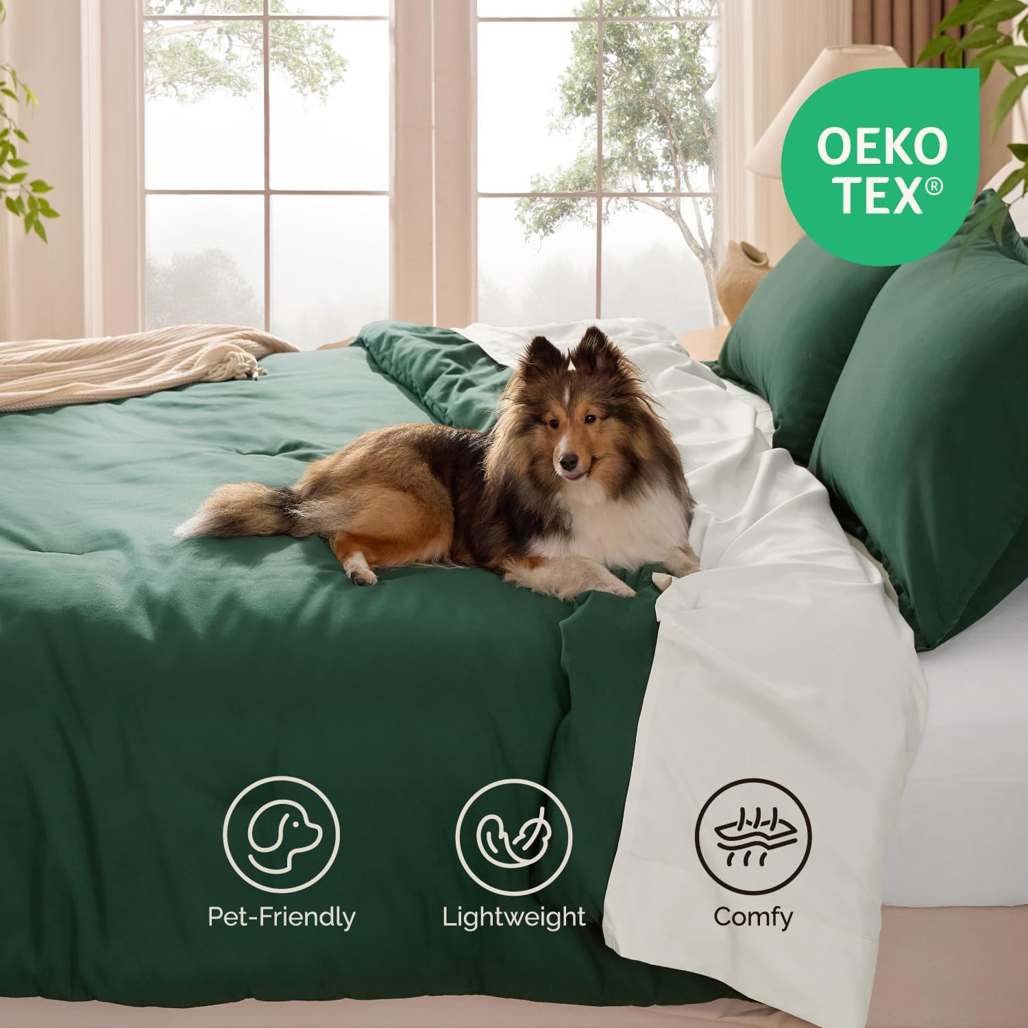 Dark Emerald Green King Size Comforter Set, 3 Pieces Forest Hunter Green Boho So