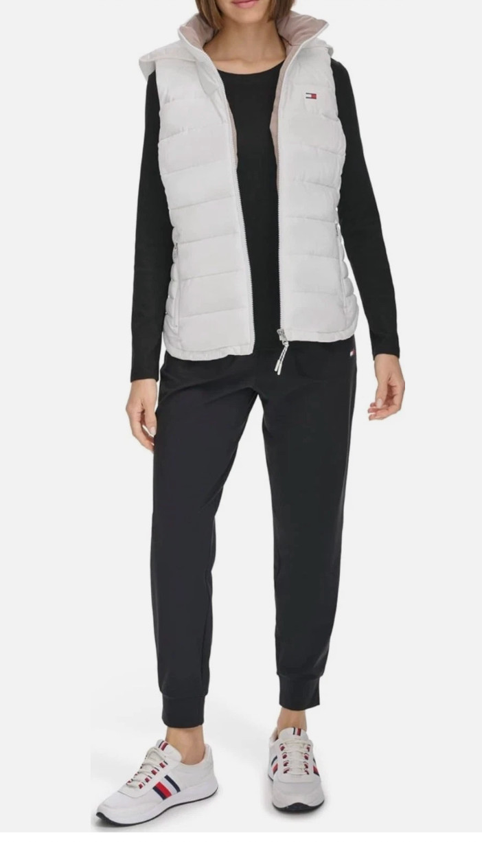 как выглядит Tommy Hilfiger Womens NEW w Tags White Puffer Vest Hood and Zippered Pockets XL фото