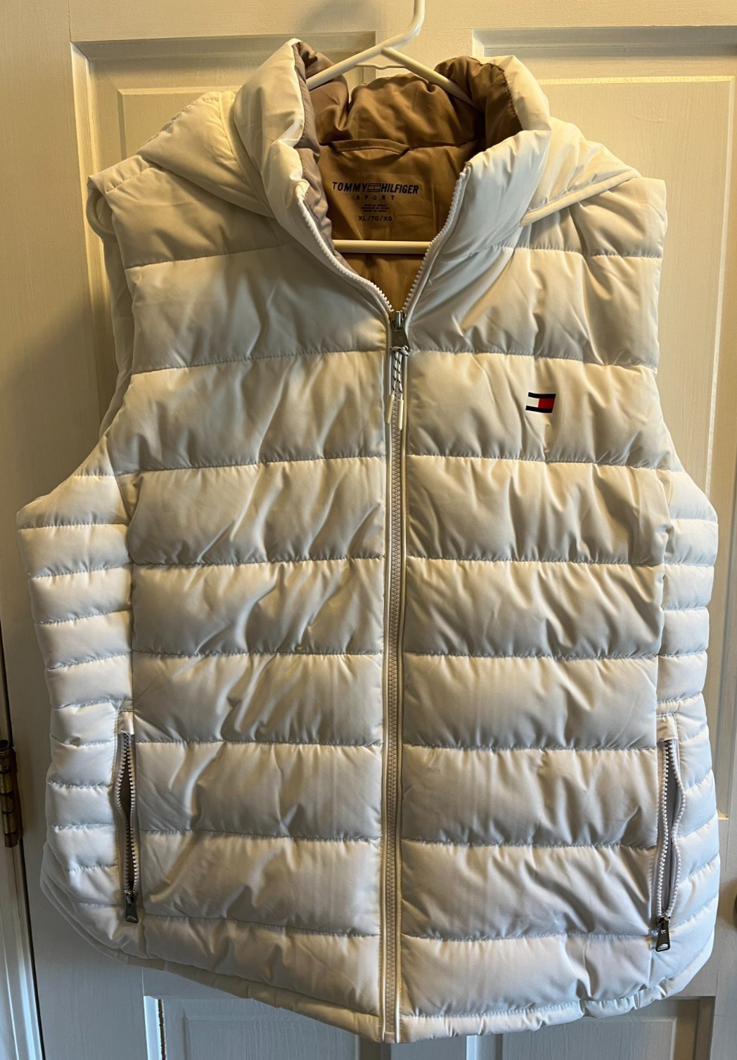 Tommy Hilfiger Womens NEW w Tags White Puffer Vest Hood and Zippered Pockets XL