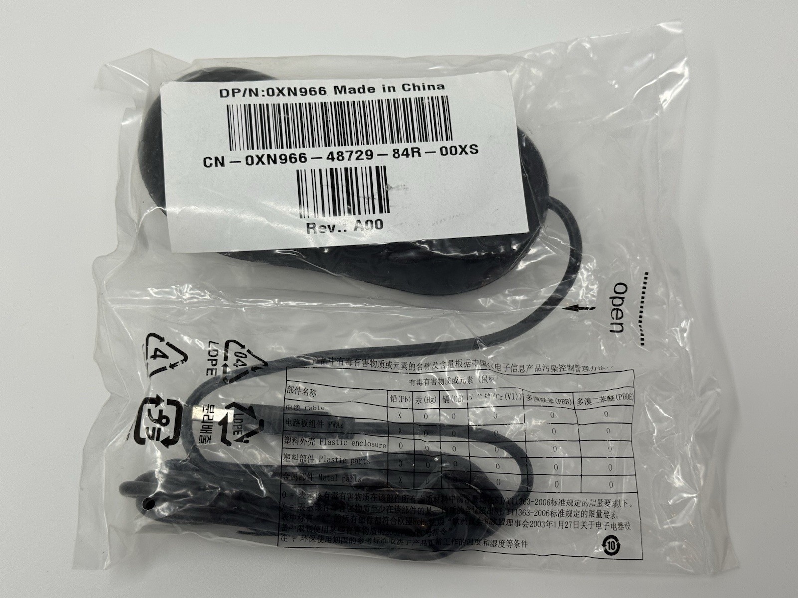 Dell Black Optical USB Mouse w/ Scroll Wheel XN966 New in Factory Sealed Bag