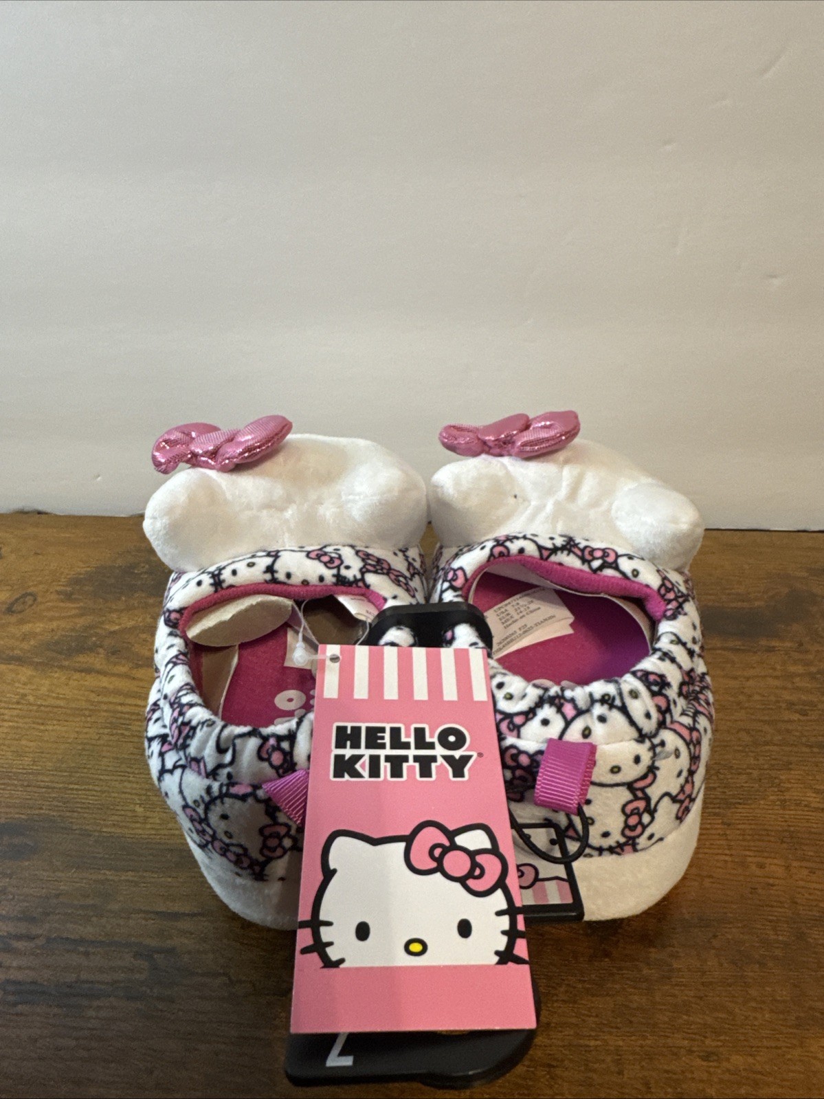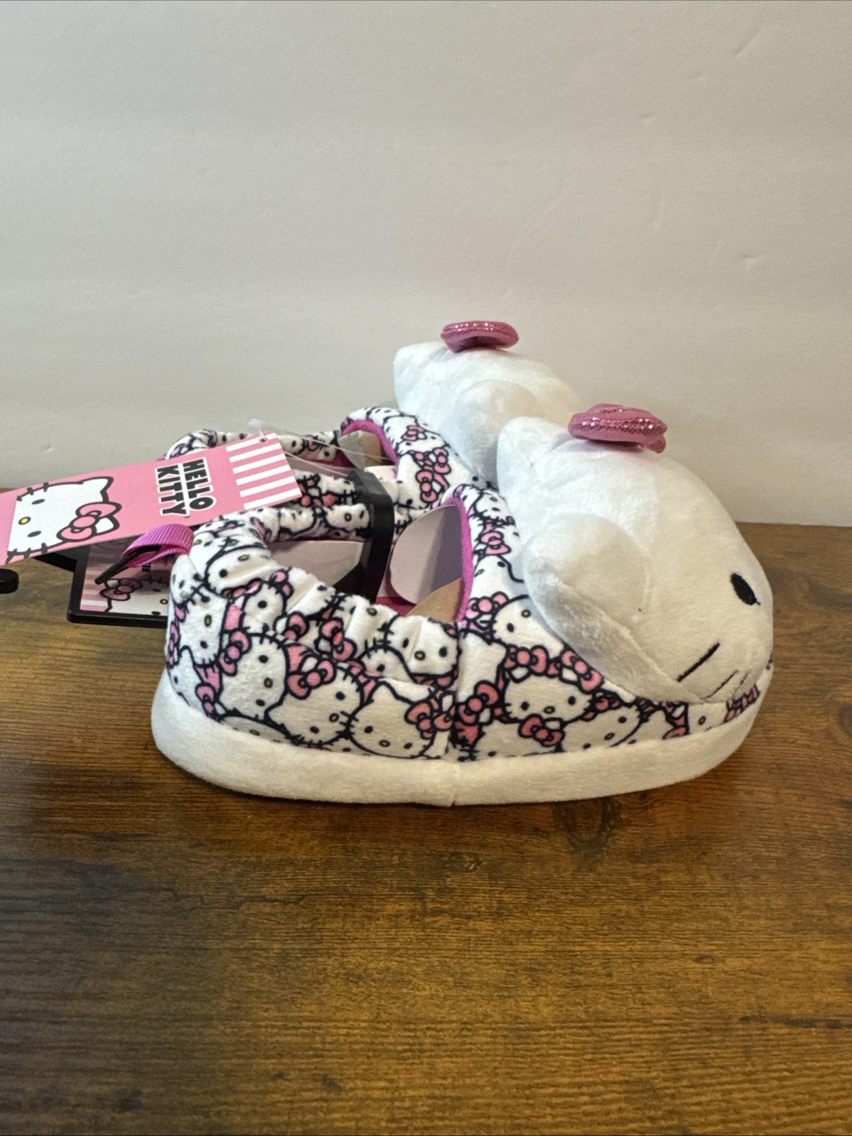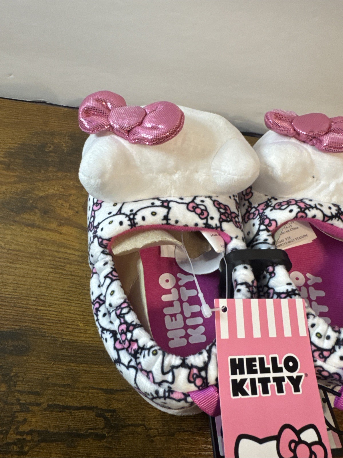 как выглядит Hello Kitty Girls Pink White Plush Slippers фото