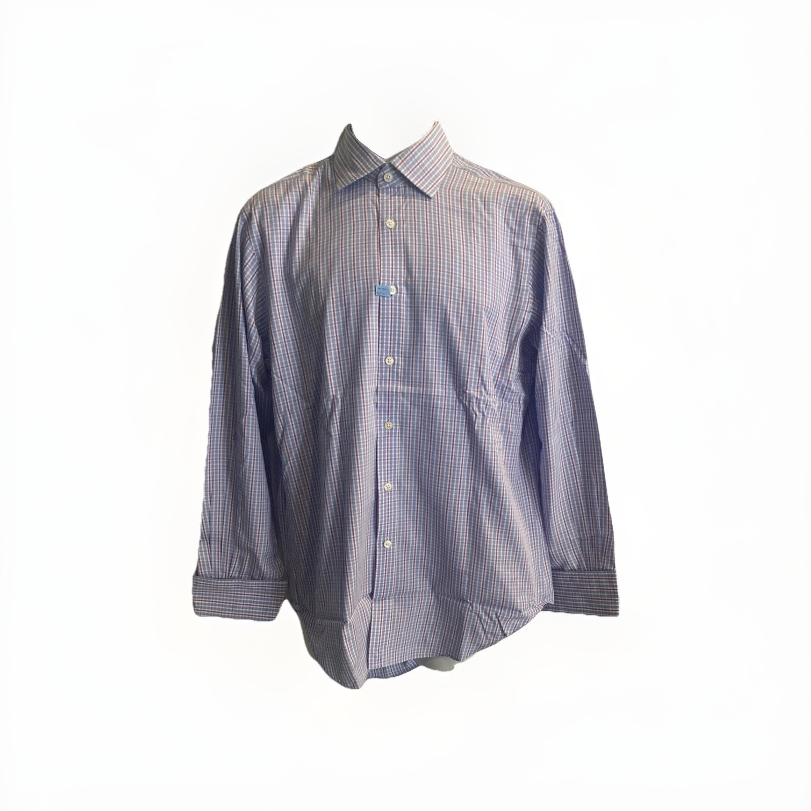 T.M. Lewin Regular Fit Lewin 100 Blue White Purple Plaid Dress Shirt 15.5 33 Men