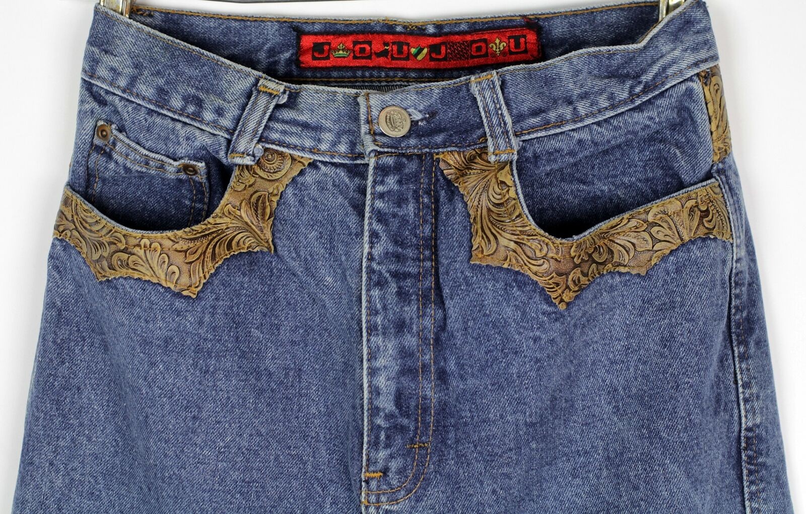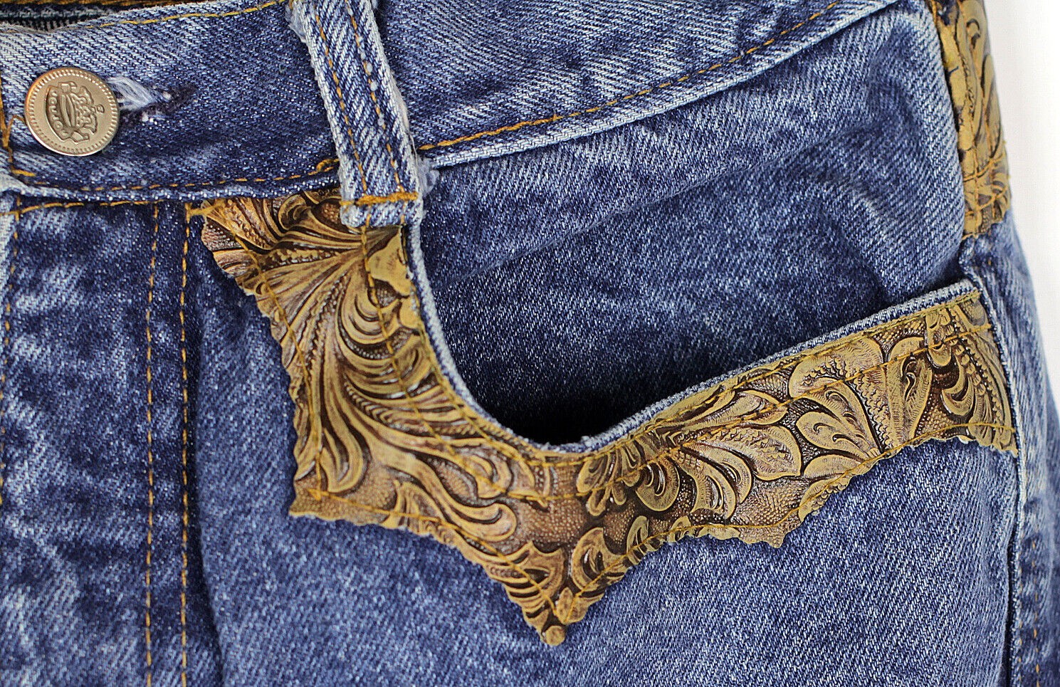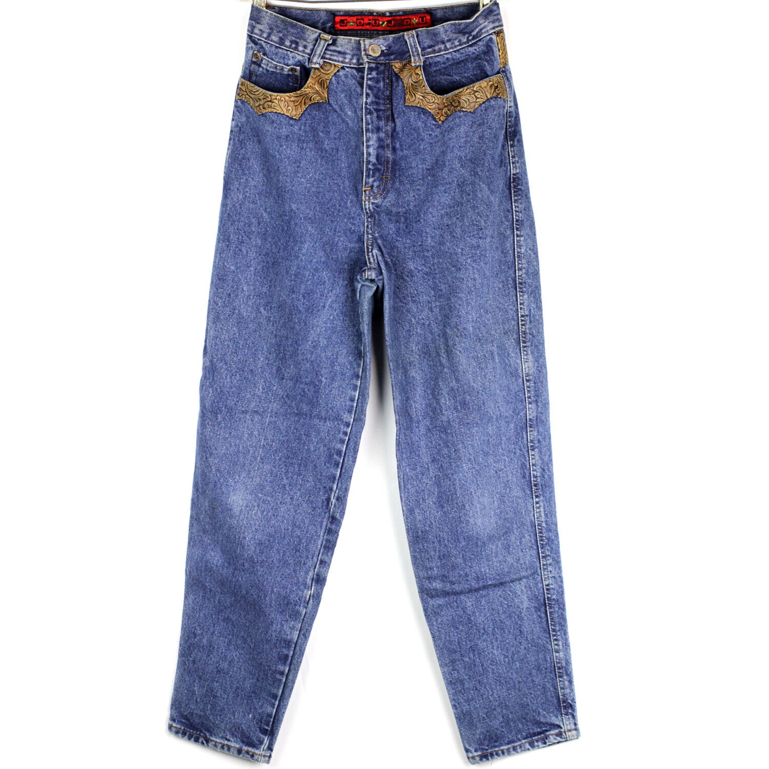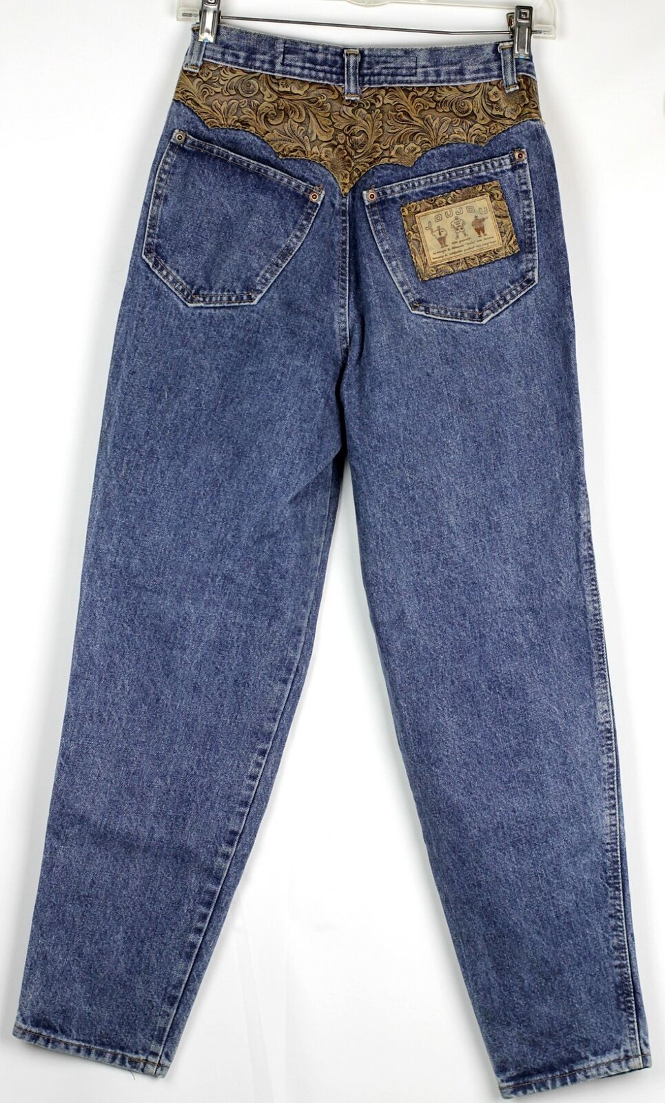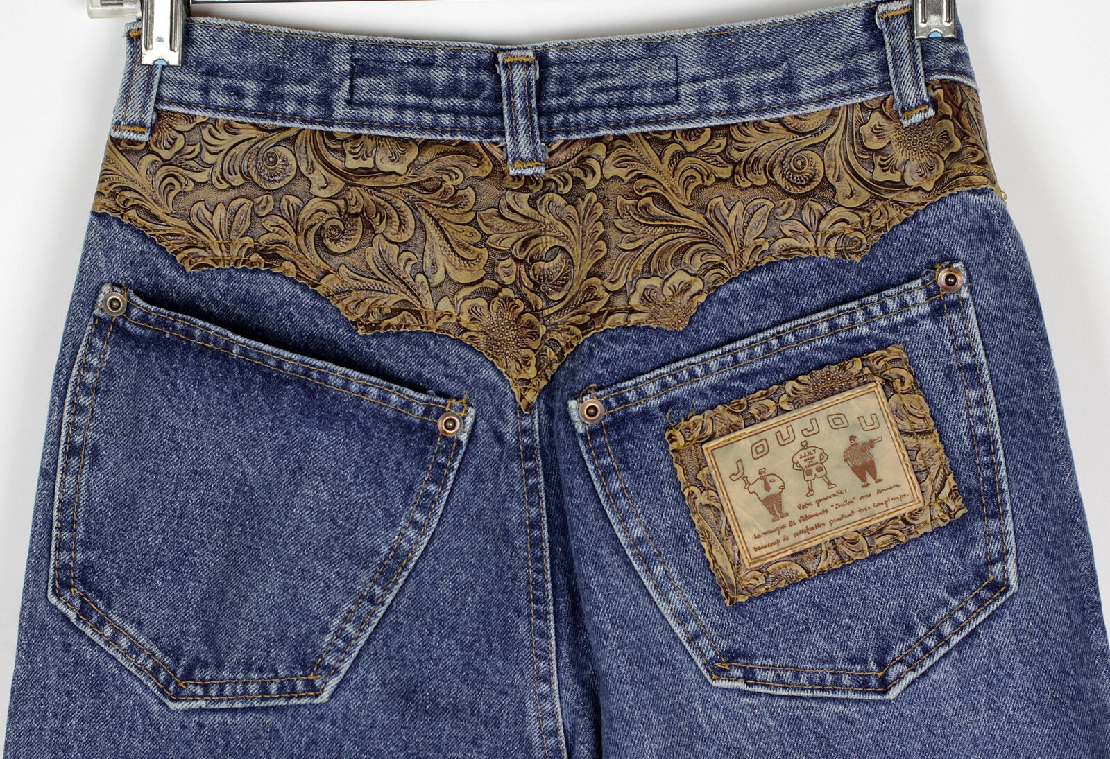 1980s Vintage JouJou High Waist Denim Mom Jeans Western Tooled Faux Leather 8