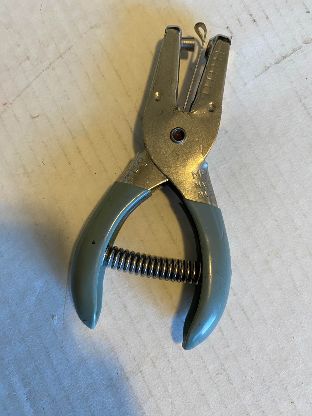 Vintage McGill Paper King hole punch coated handle w/ margin guides