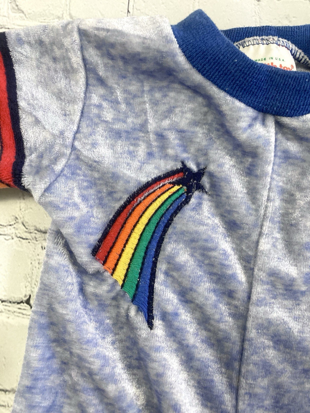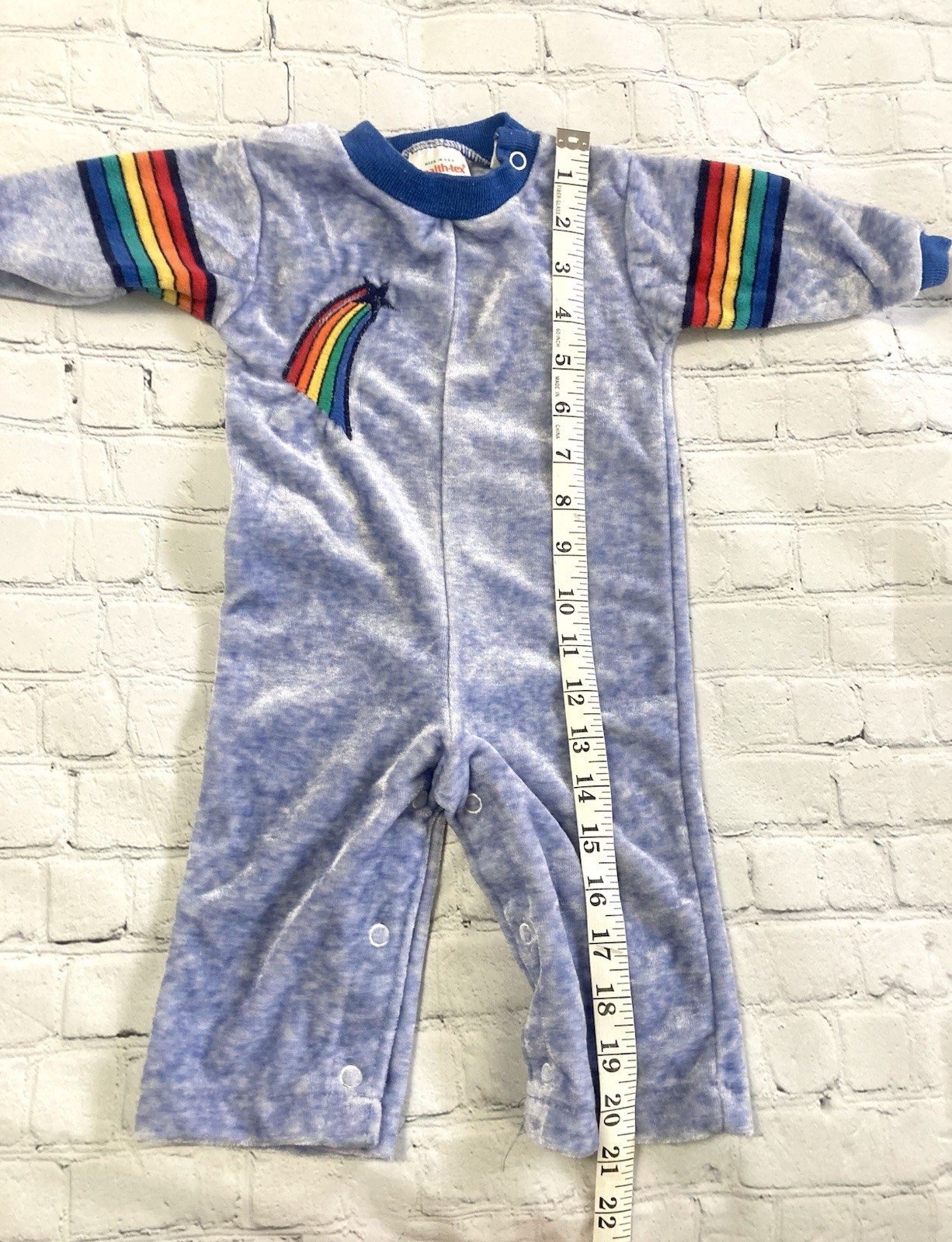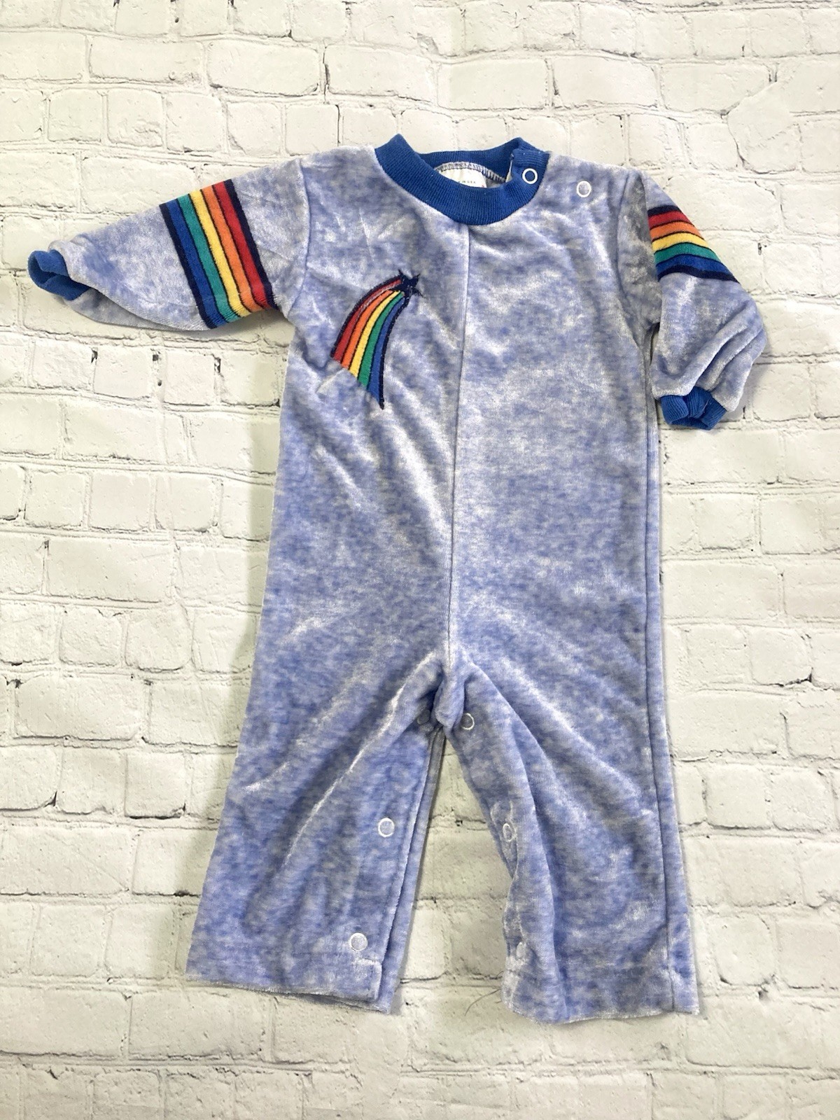 Vtg Health-Tex Rainbow Stripe Velour Romper Blue Baby 9 Month USA Made One Piece