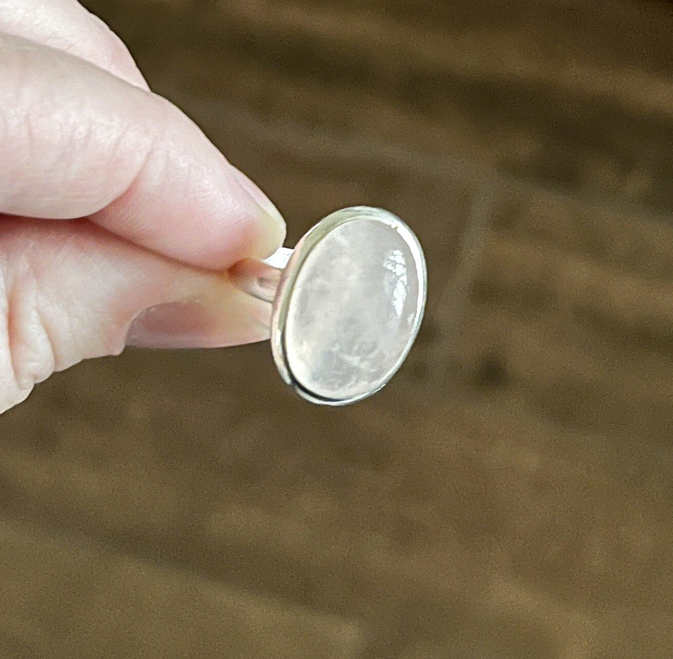 Sterling Silver 925 Pink Rose Quartz Stone Oval Ring Size 9