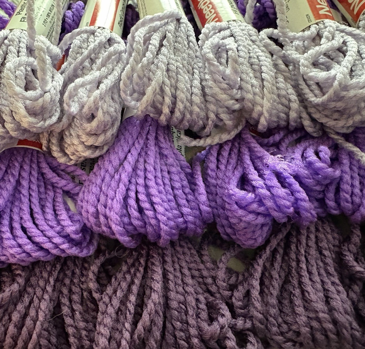 как выглядит Needloft PLASTIC CANVAS YARN 20 Hank-Lot PURPLES Discontinued фото