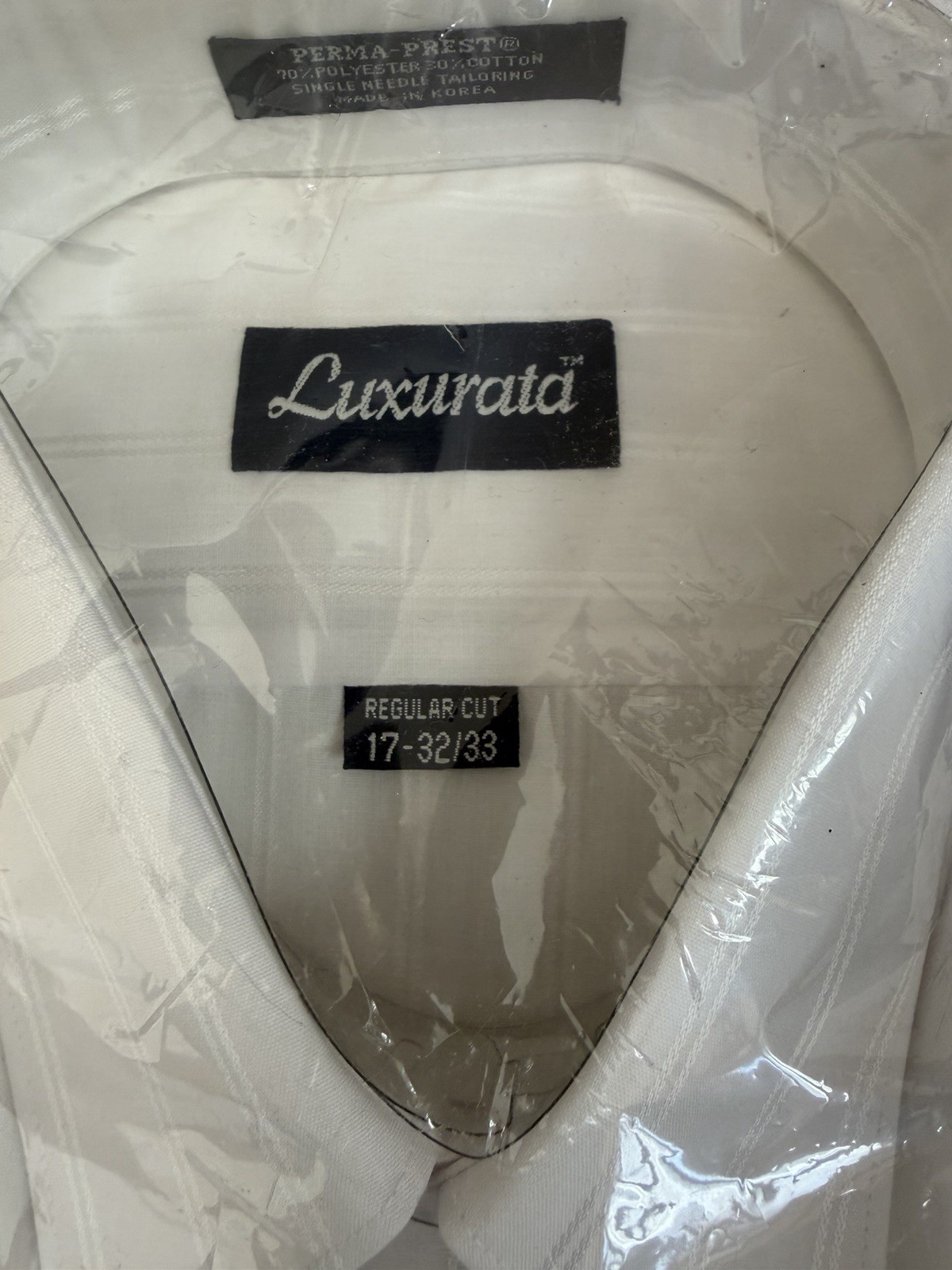 как выглядит Vintage 1970s Sears Luxurata White Dress Shirt NOS 17 32/33 Perma Press USA фото
