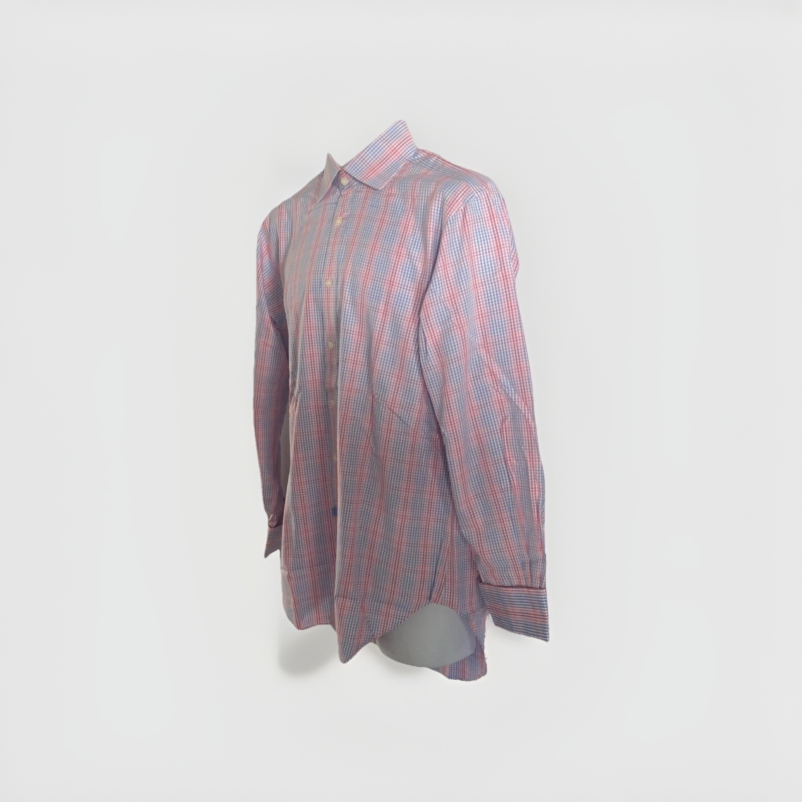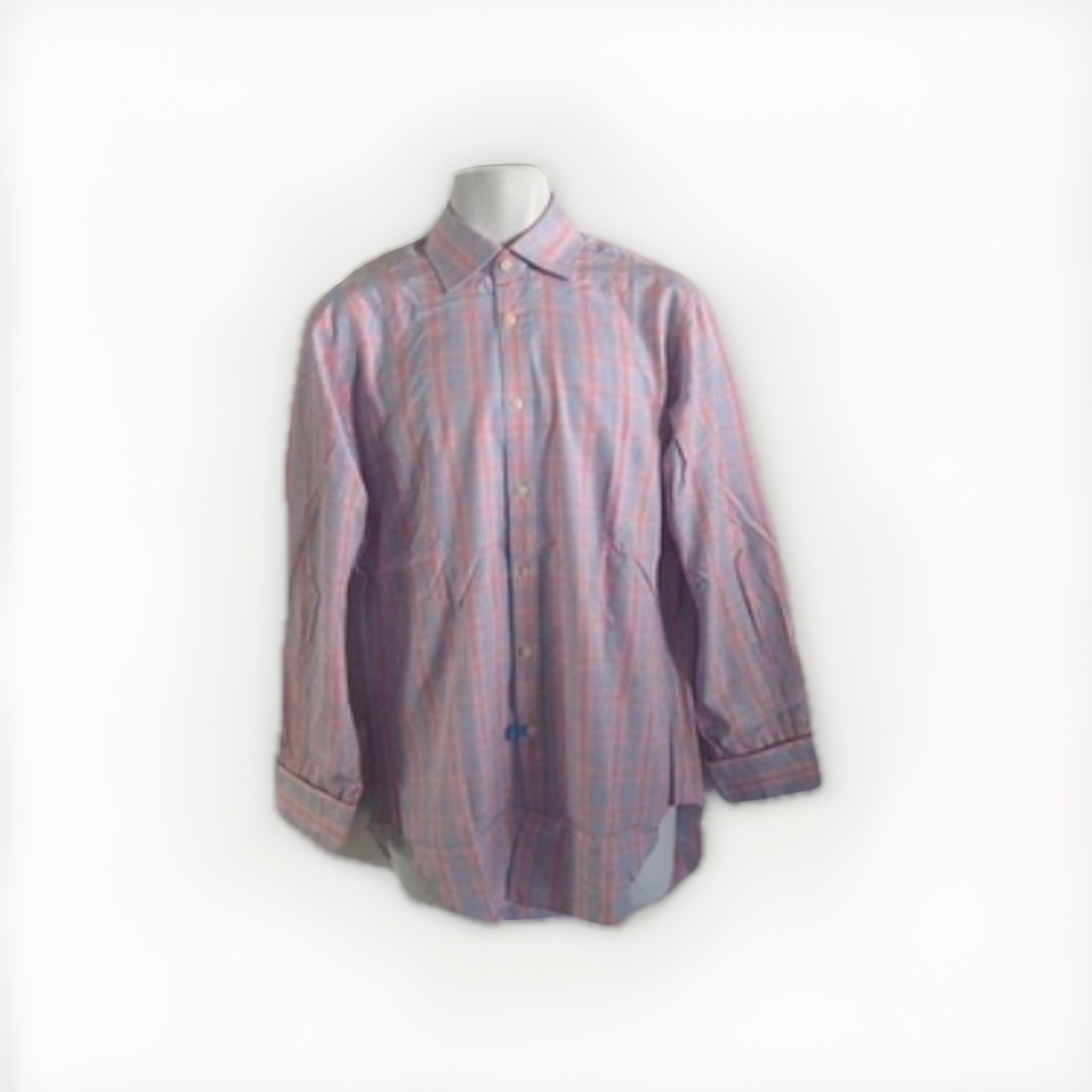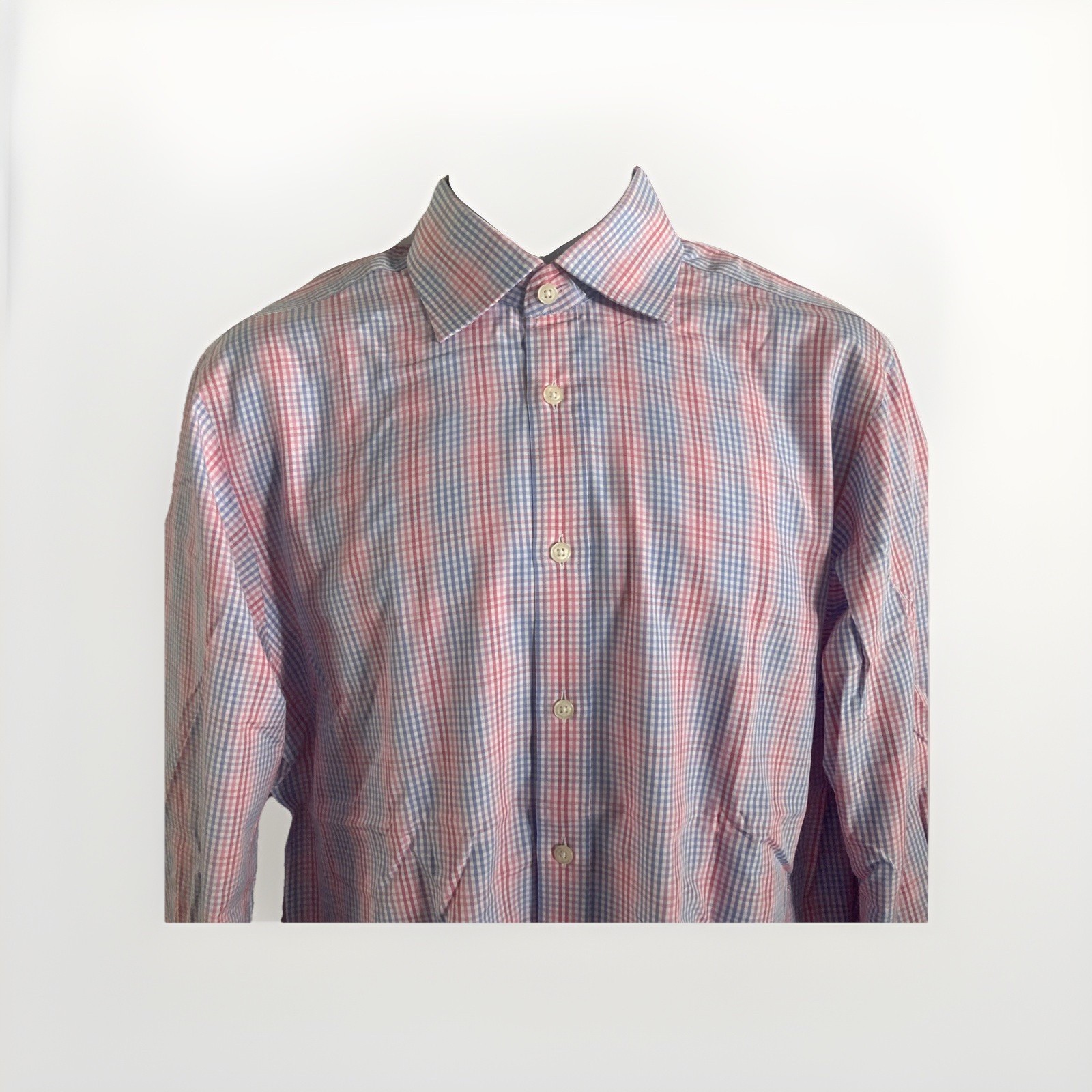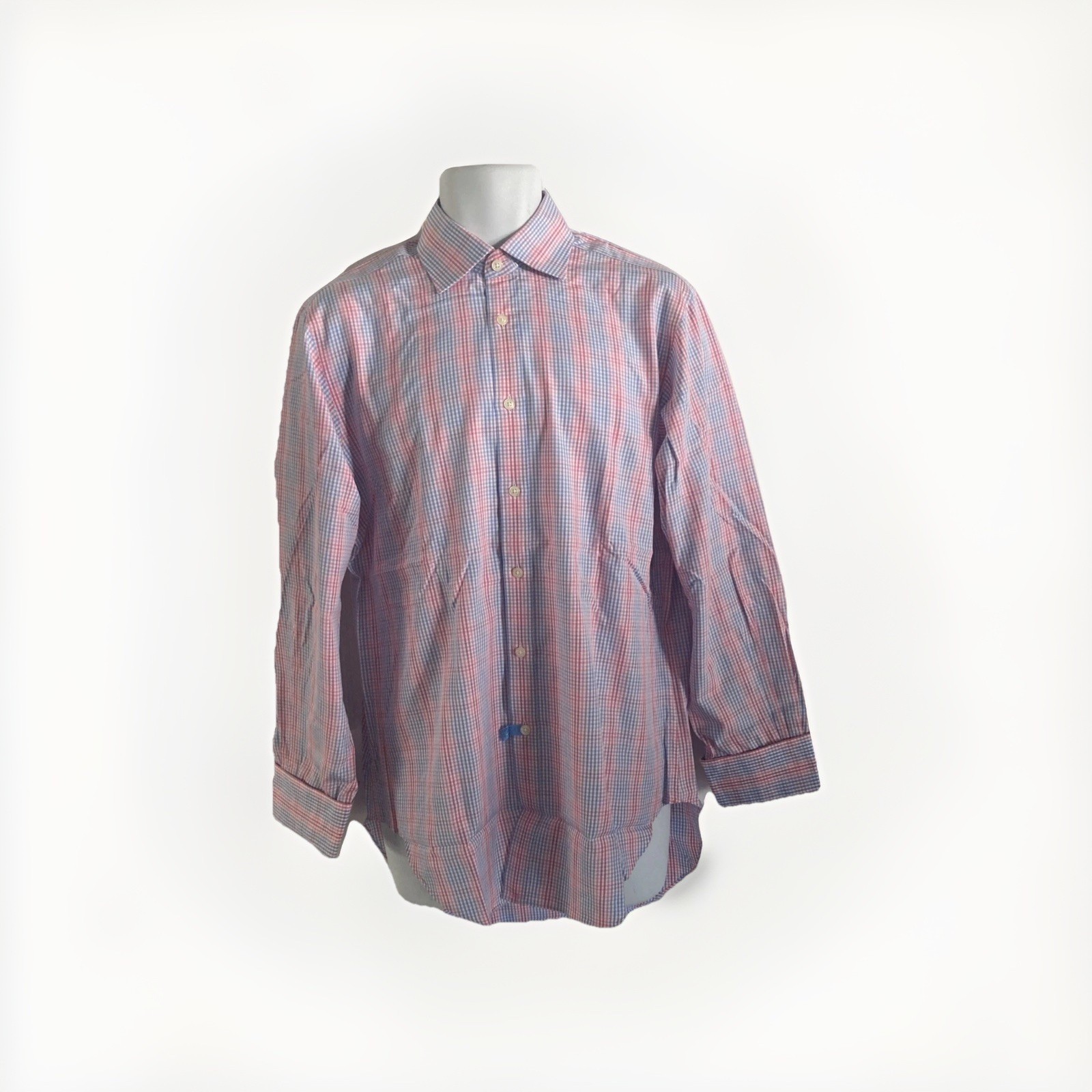 T.M. Lewin Mens Lewin 100 Cotton Multicolored Plaid Check Dress Shirt 15.5 33