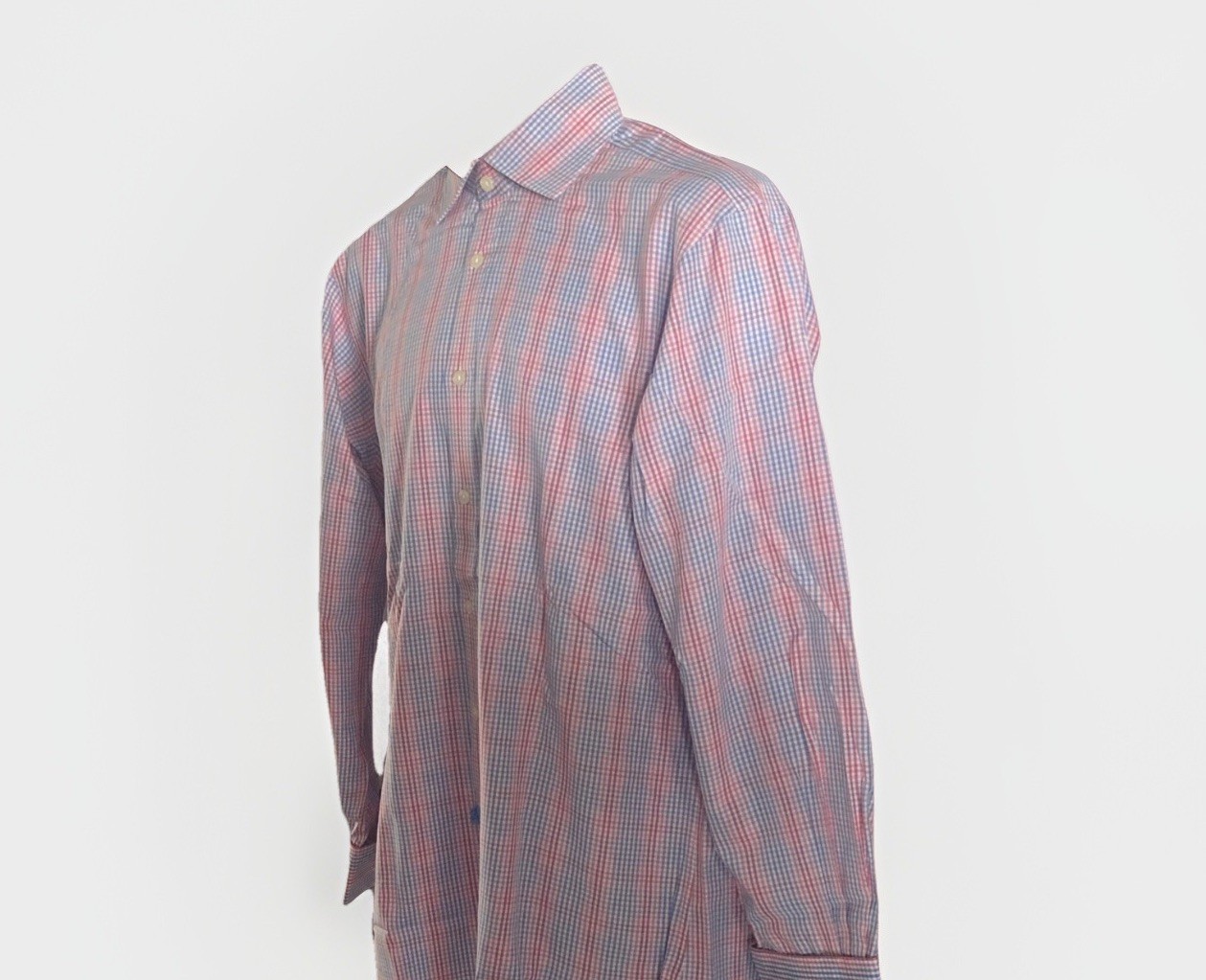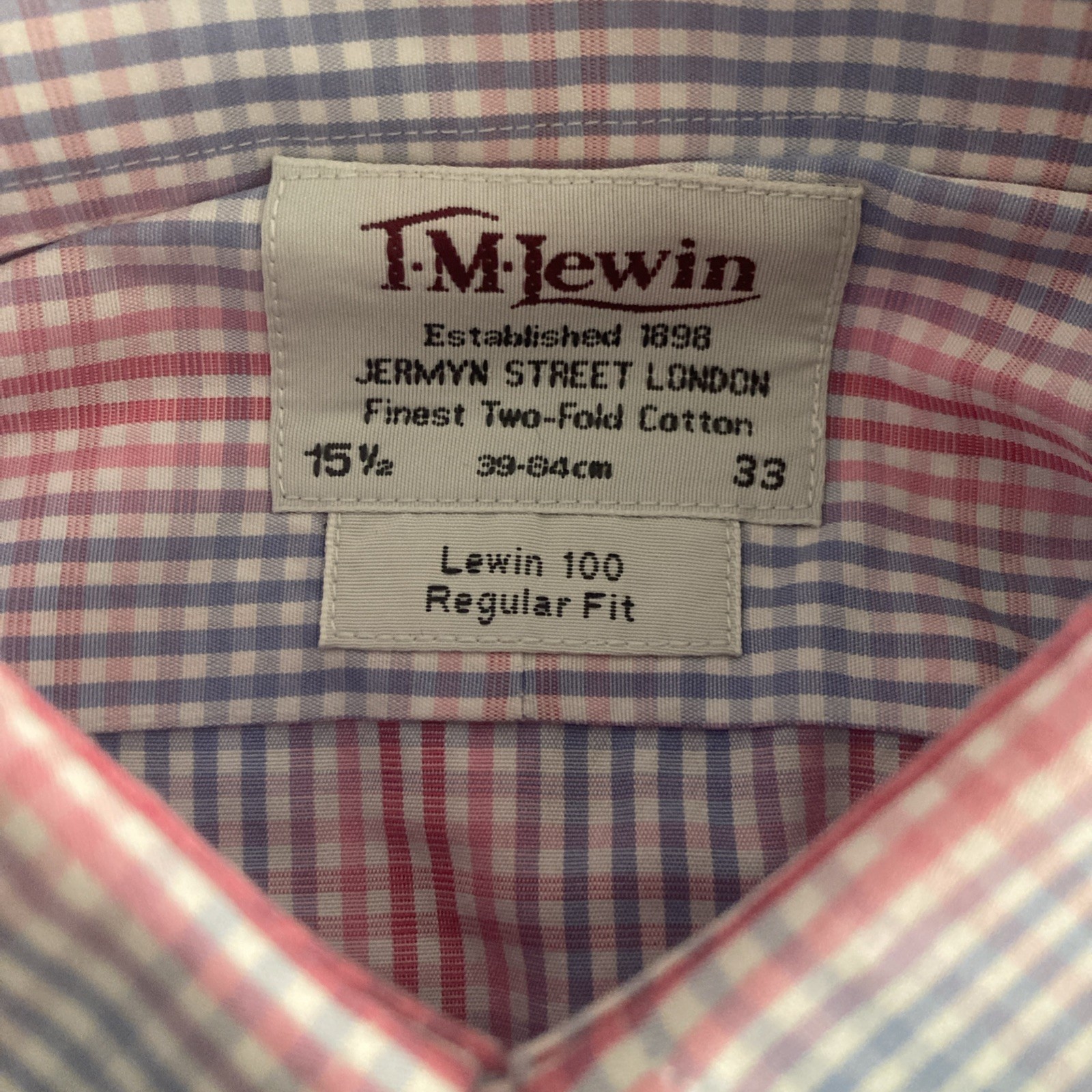 как выглядит T.M. Lewin Mens Lewin 100 Cotton Multicolored Plaid Check Dress Shirt 15.5 33 фото