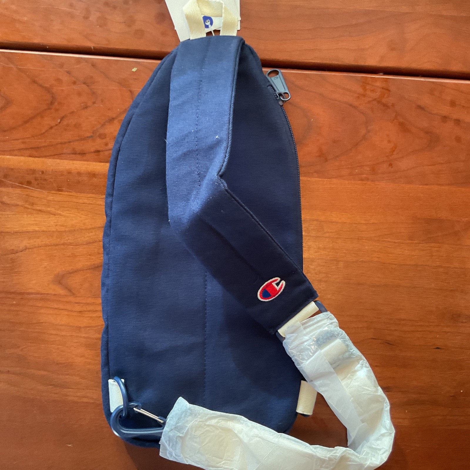 как выглядит Champion Canvas Sling Bag Navy Exterior Zip Pocket,Reversible Adjustable Strap фото