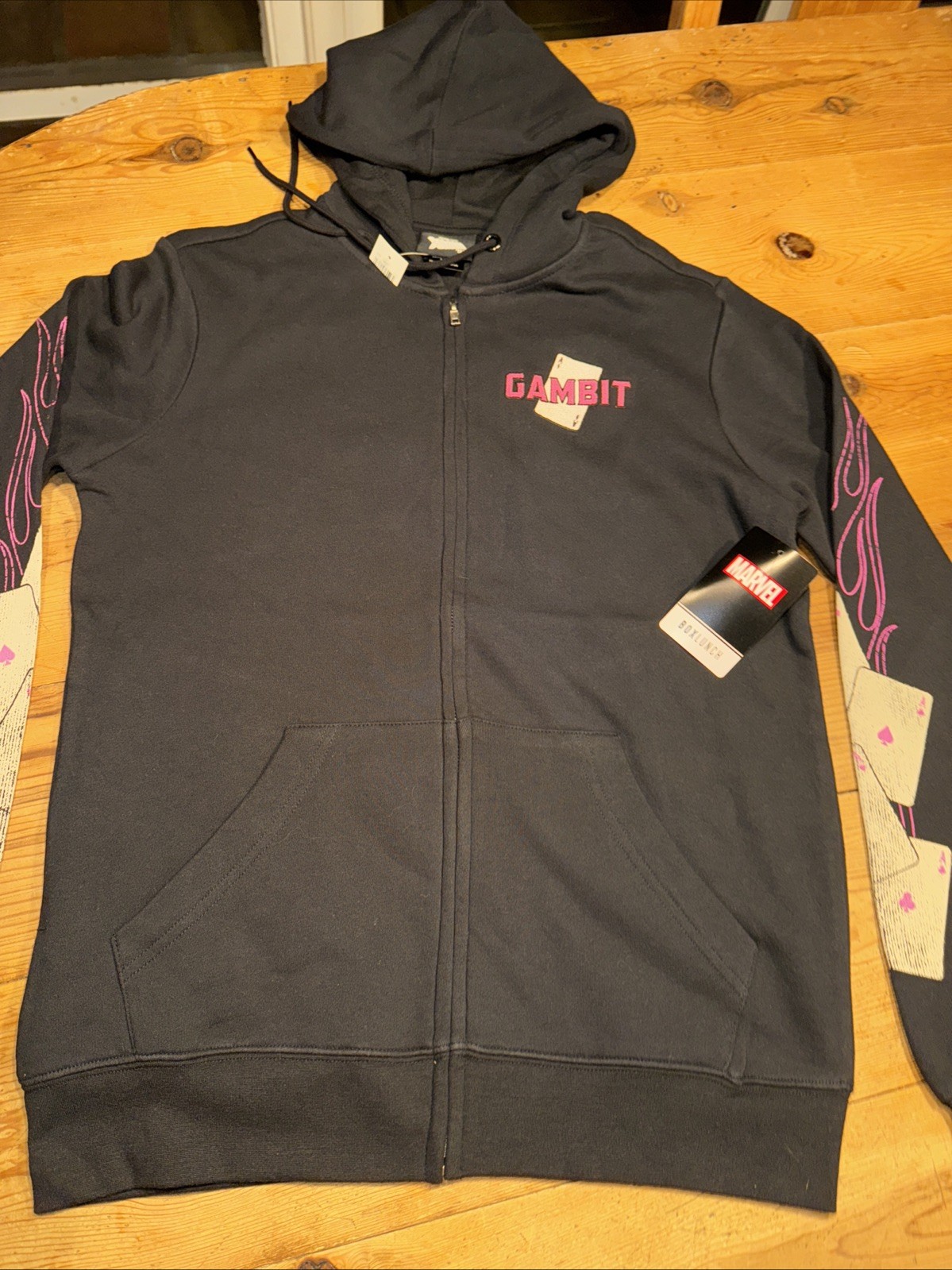 как выглядит X-Men Marvel 97 Gambit Cards Zip Hoodie BoxLunch Her Universe XS XSMALL NWT фото