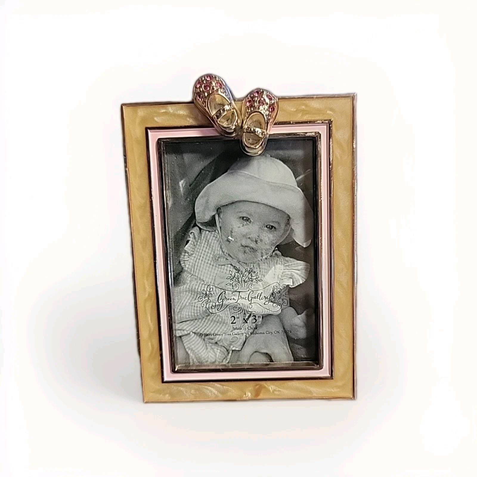 Picture Frame Baby s First Photo Mini 2x3 Pink Rhinestone Baby Shoes Grandma