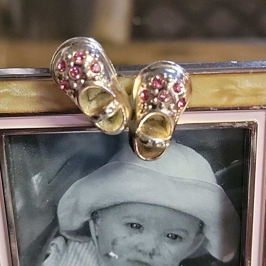 Picture Frame Baby s First Photo Mini 2"x3" Pink Rhinestone Baby Shoes Grandma