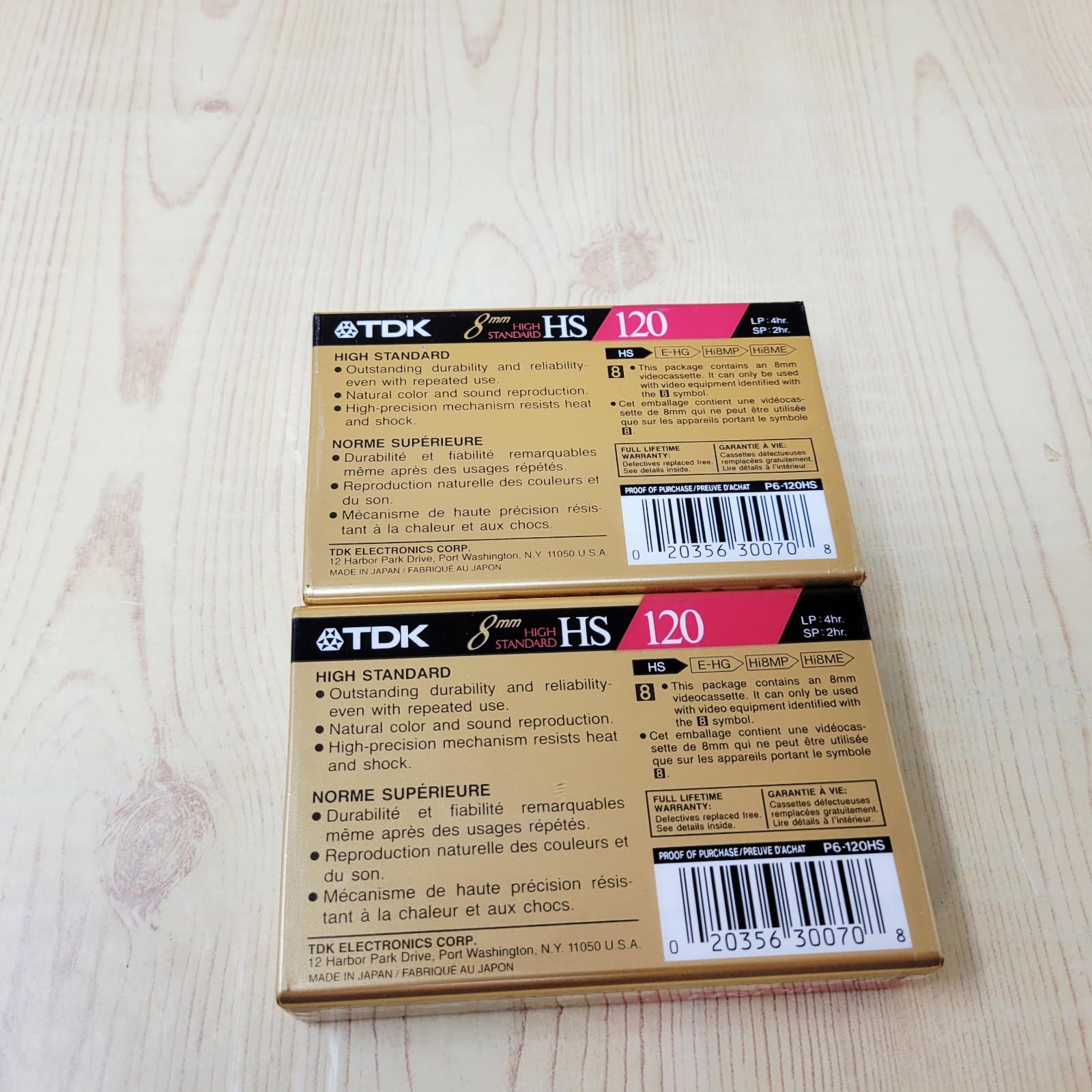 2 PACK TDK 8MM VIDEO CASSETTE TAPES High Standard HS120 NEW