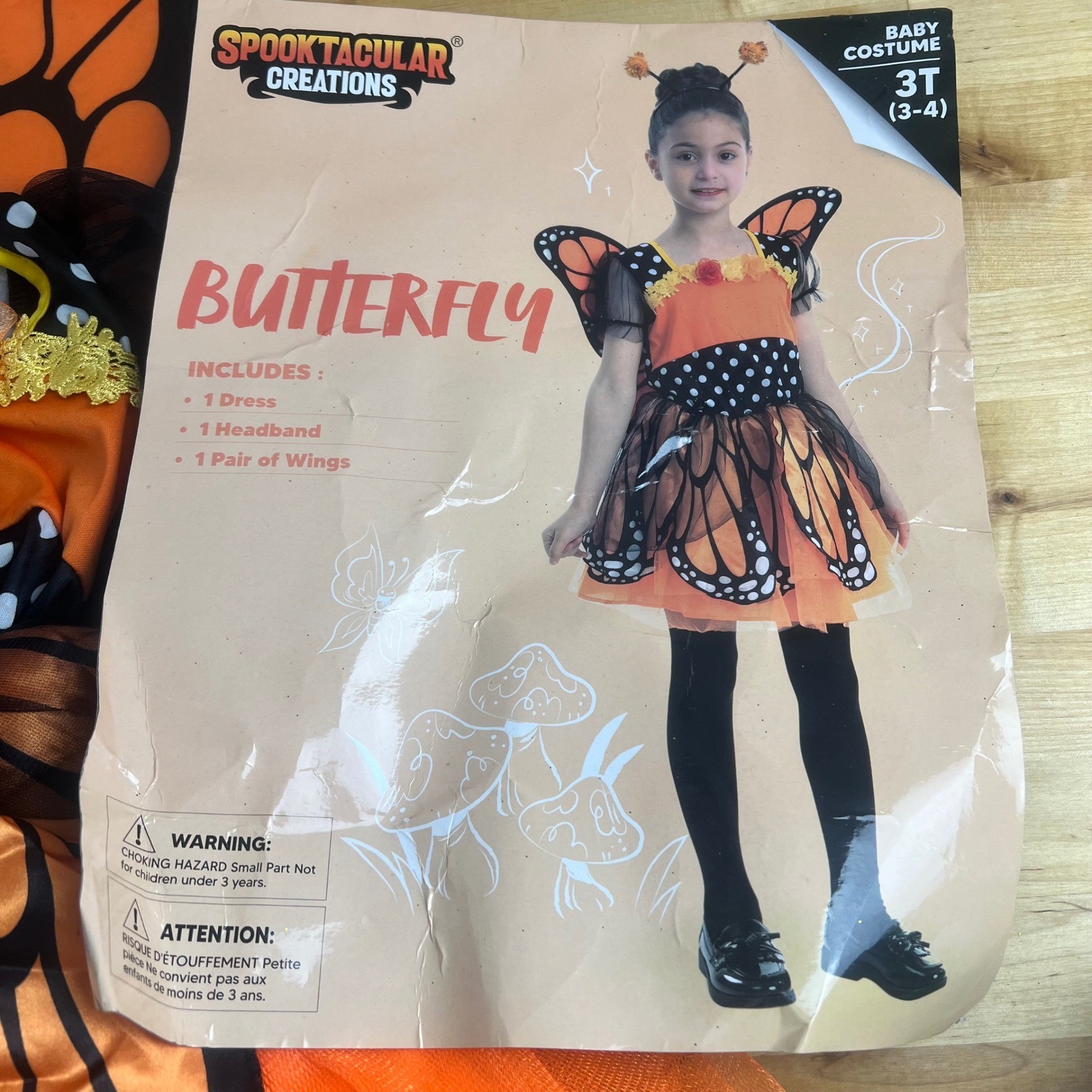 Butterfly Costume Dress Headband Wings Toddler 3T 3-4Y Orange Black Monarch