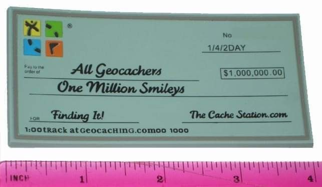 1Million Smiley Rubber Check Geocoin - 100 Made - Activated Adoptable