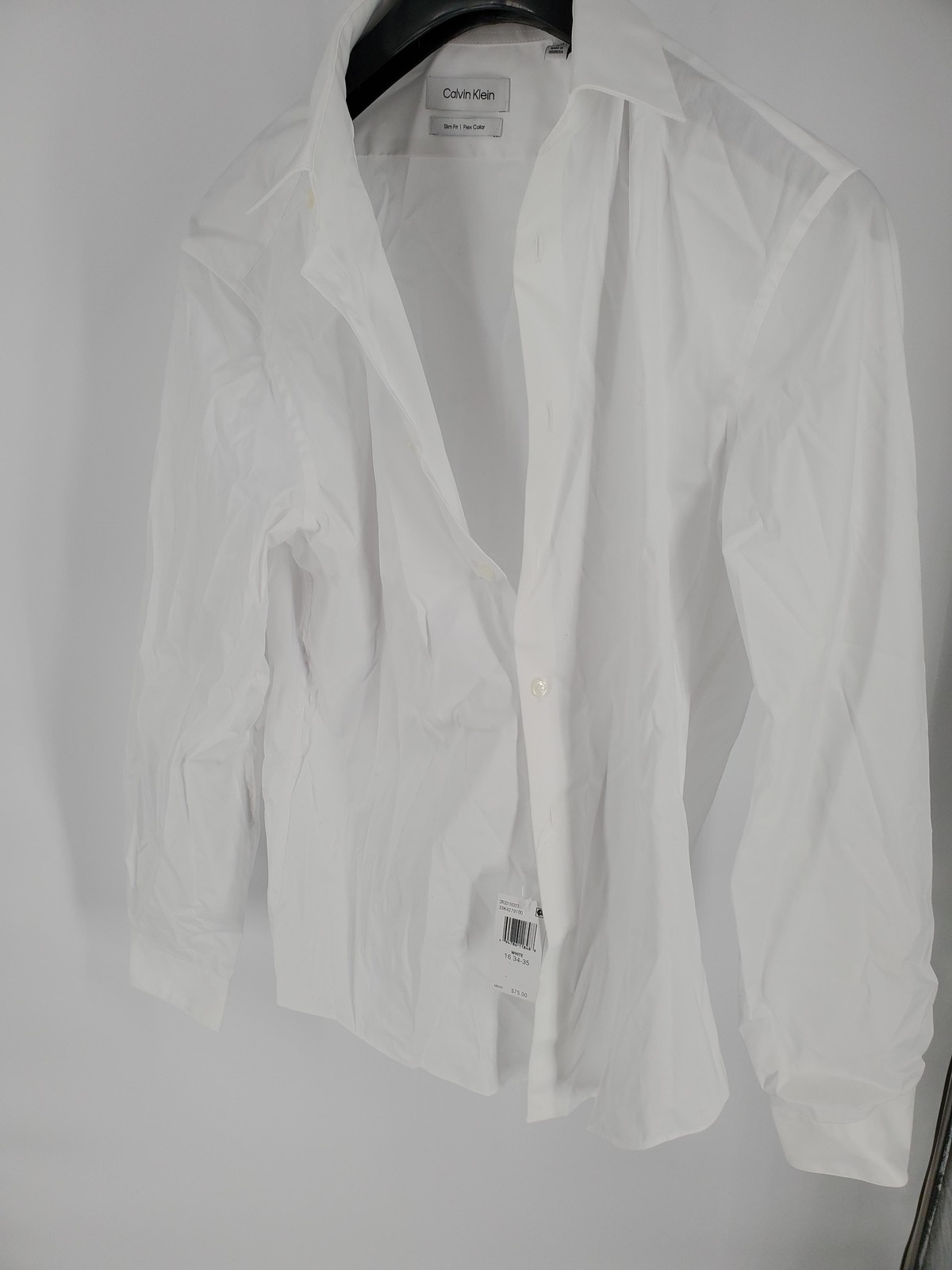 как выглядит Calvin Klein Dress Shirt Mens L 16 34/35 White Slim Fit Flex Collar Stretch фото