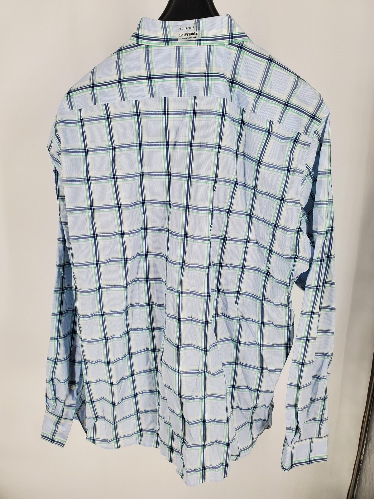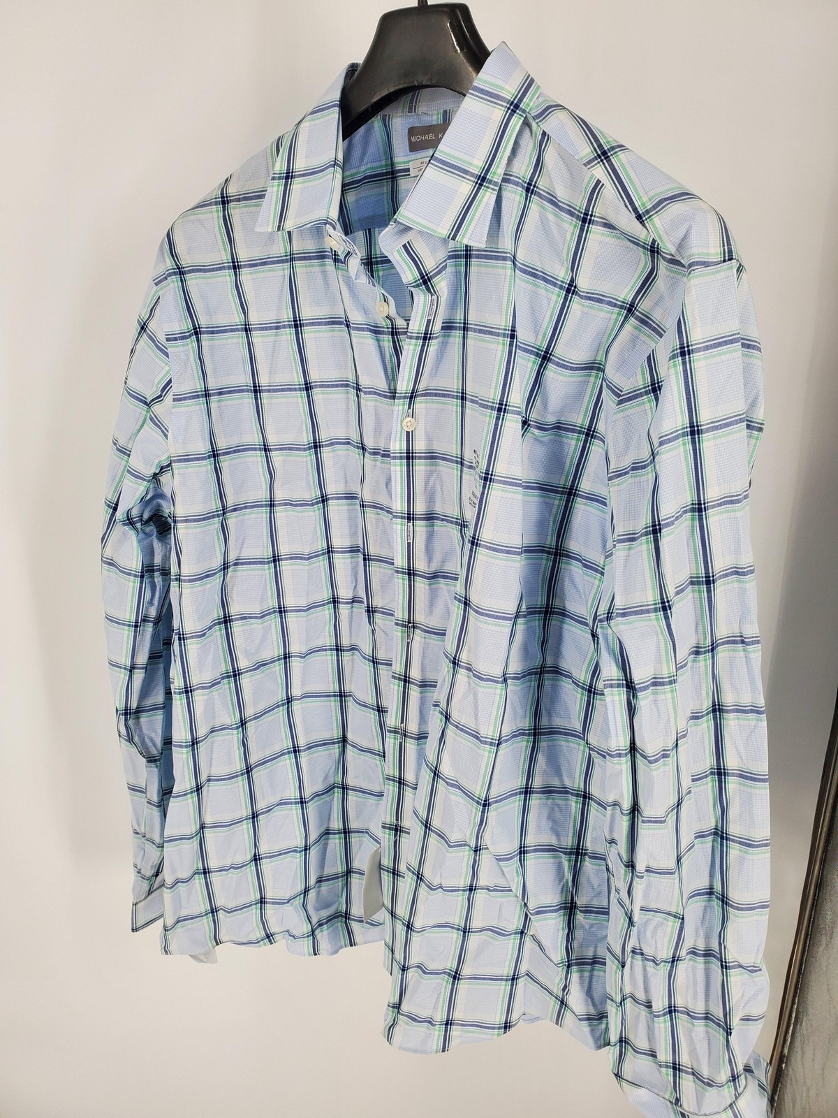 как выглядит Michael Kors Dress Shirt Mens 2XL 18 36/37 Green Plaid Wrinkle Free Stretch фото
