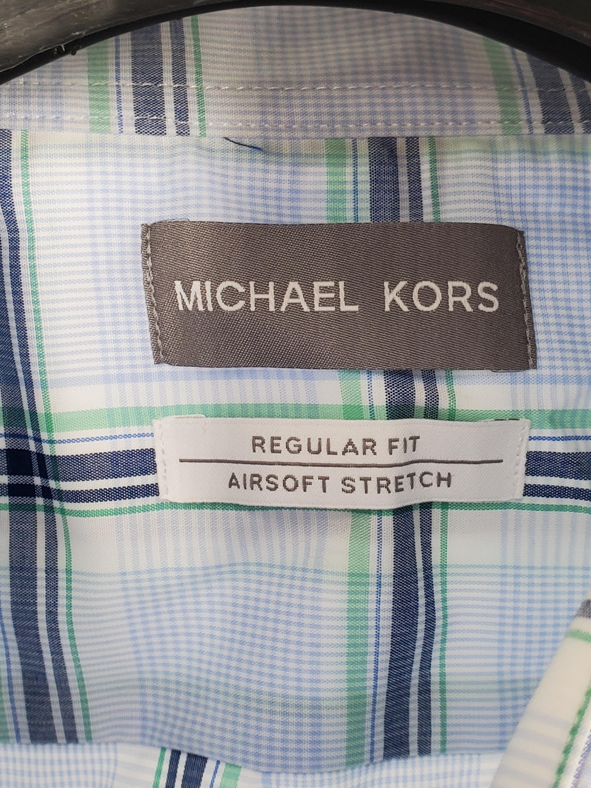 Michael Kors Dress Shirt Men's 2XL 18 36/37 Green Plaid Wrinkle Free Stretch