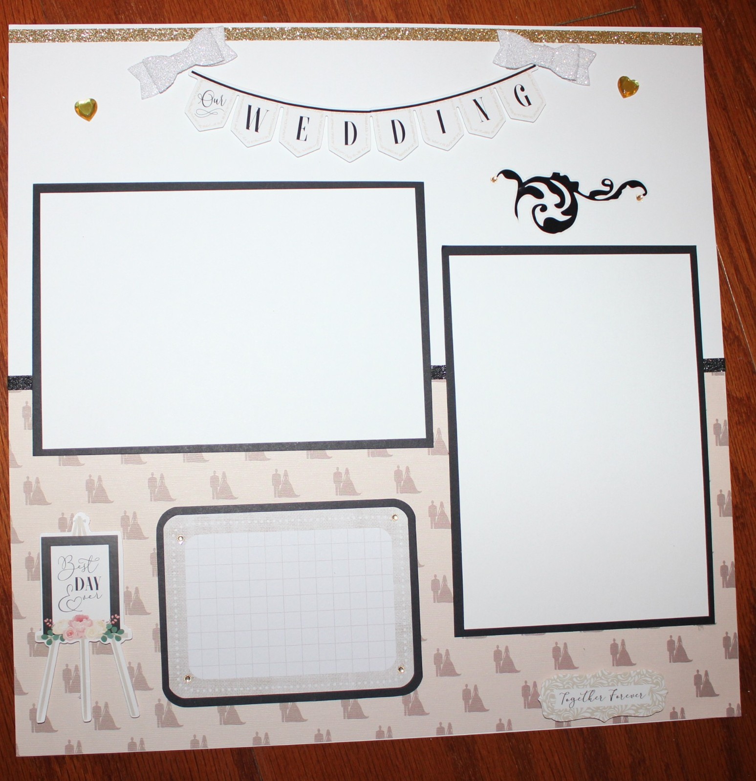 как выглядит Wedding scrapbook pages, 2 each 12 x 12 handmade assembled "I Do" premade layout фото
