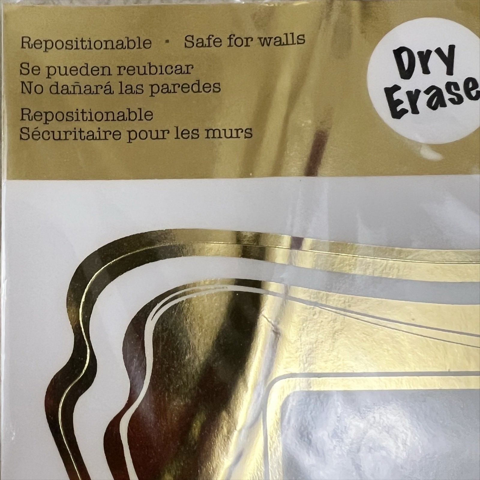 как выглядит New Set of 7 Peel and Stick Dry Erase Stickers White with Gold Trim Border фото