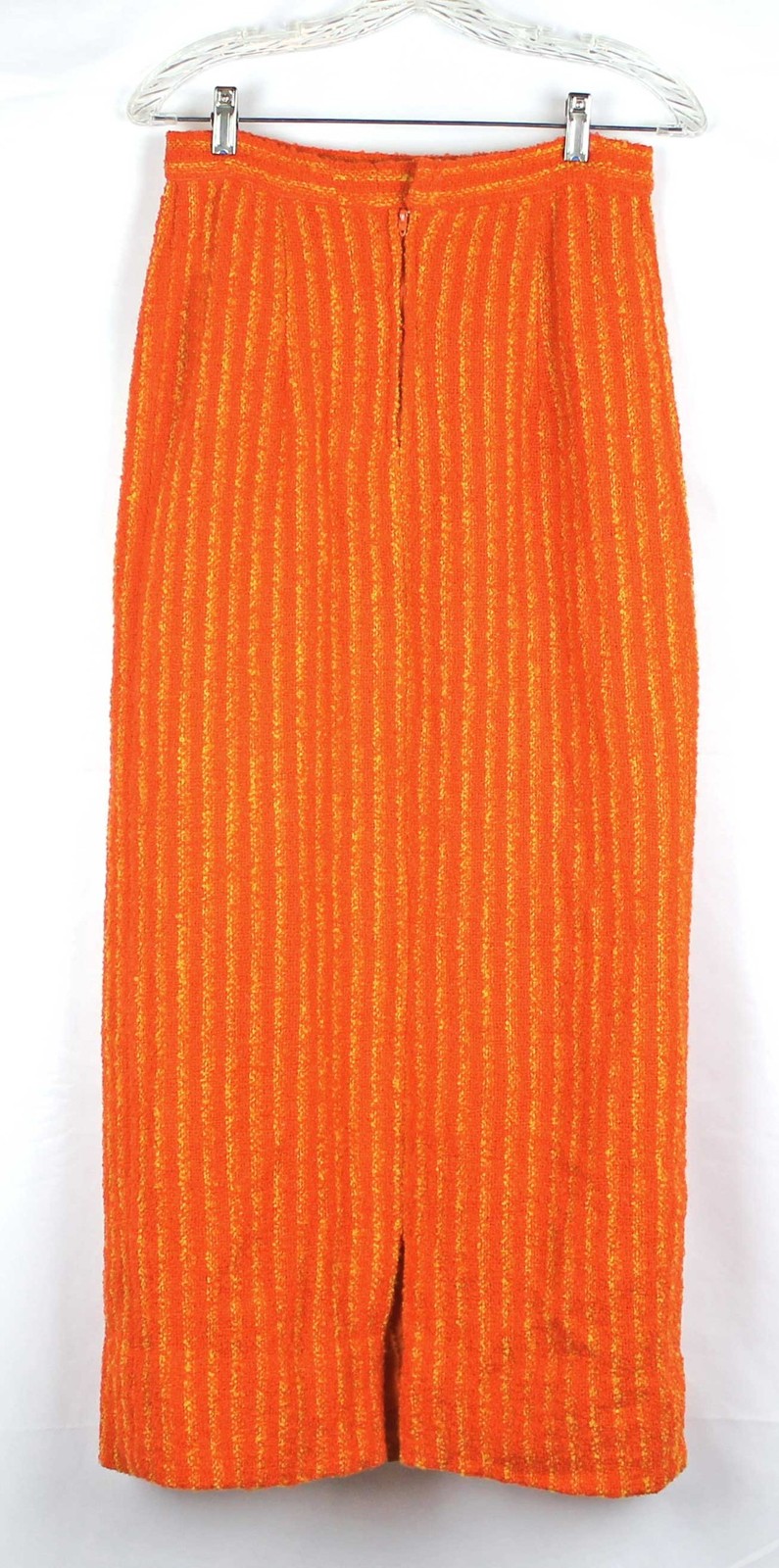 1960s 70s Vintage Long Hostess Maxi Skirt Pumpkin Orange Stripe Wool Boucle 8