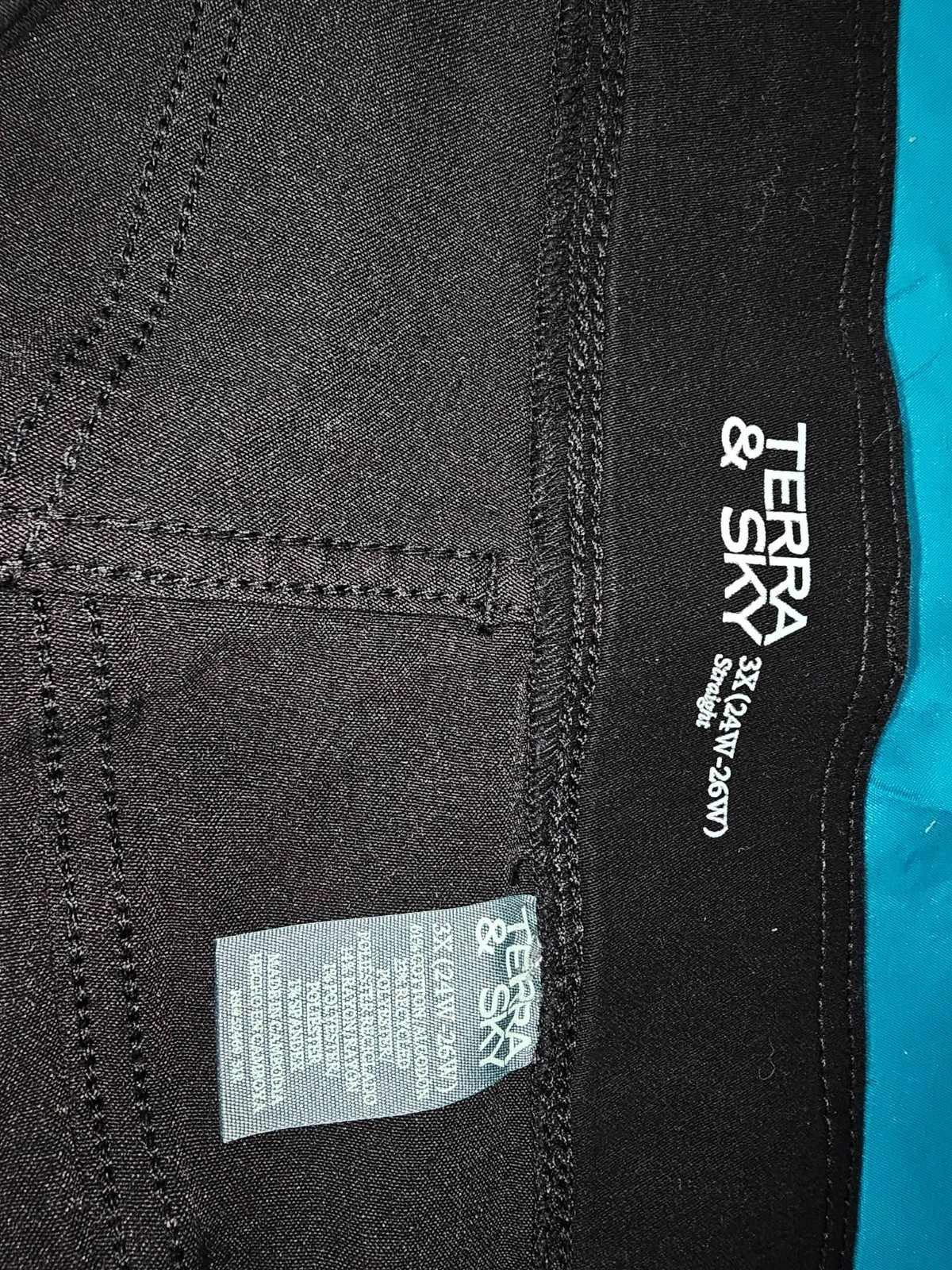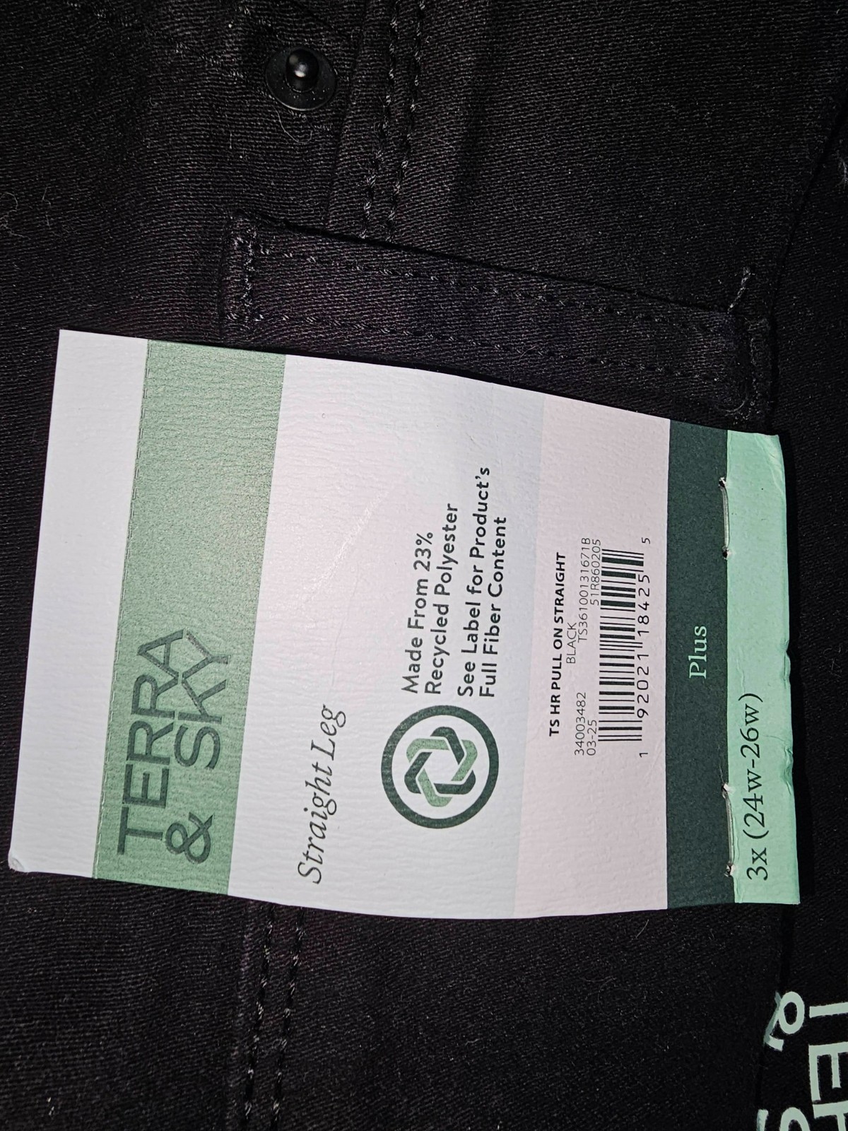 Terra Sky Pull On Black Pants 3x 24W-26W Straight Leg Stretch Waist POCKETS NWT