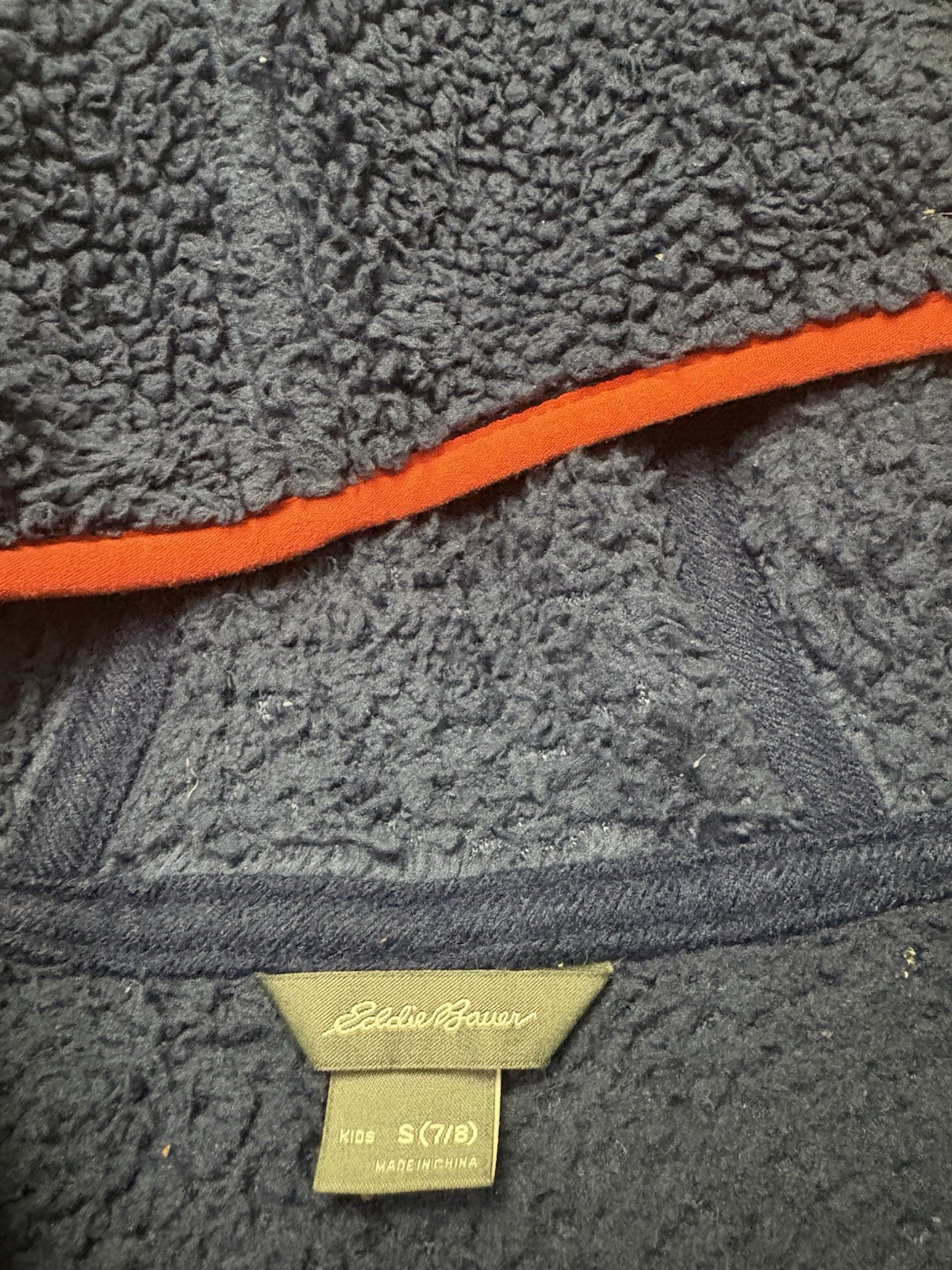 как выглядит Eddie Bauer Sherpa Jacket Kids Small 7/8 Fleece Deep Pile Hooded Outdoor фото