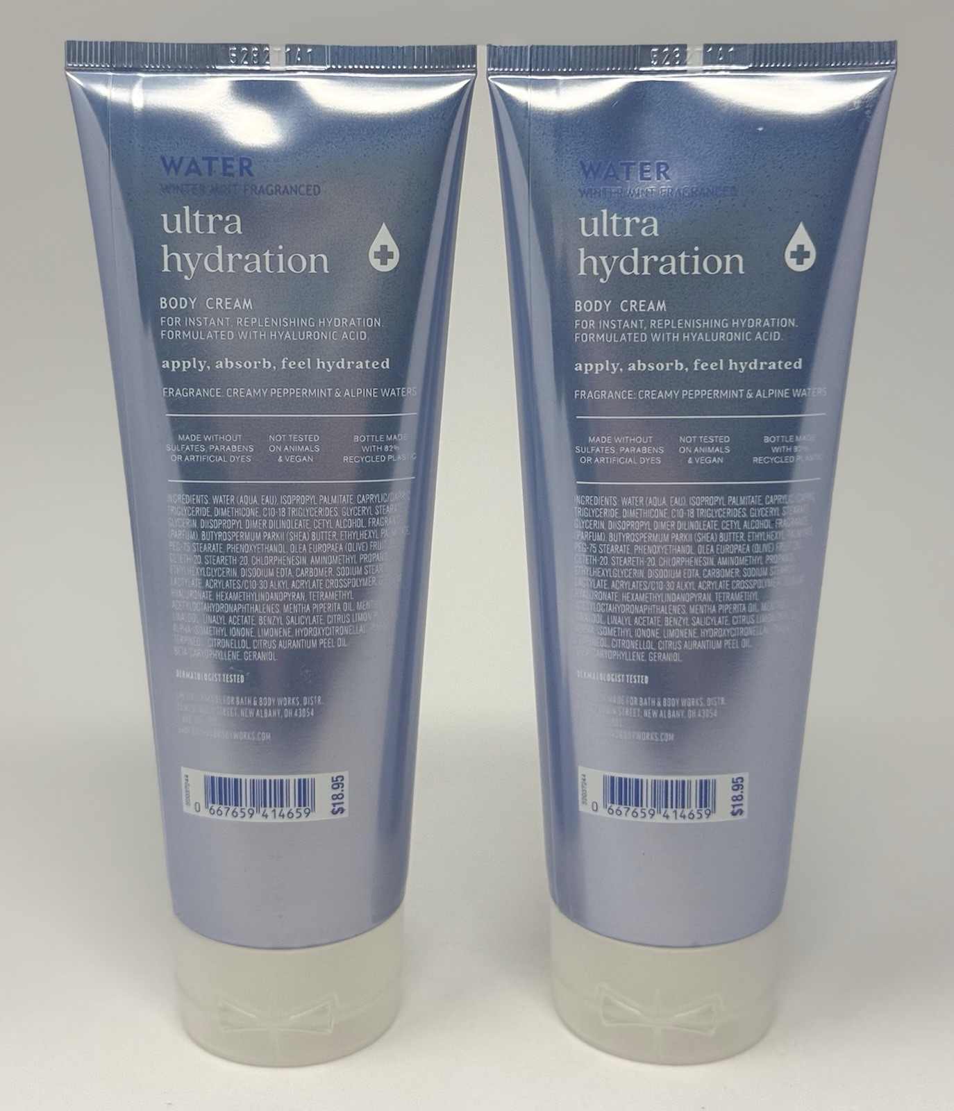 2 NEW Bath Body Works Water Winter Mint Ultra Hydration Body Cream Lotion 8 oz